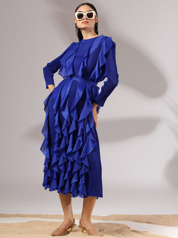 Metallic pleated dresses are dominating party wear trends in 2025 because they offer the perfect mix of glamour and comfort. The pleats add graceful movement, while metallic shades reflect light beautifully, making the outfit stand out at evening events. This dress is ideal for women who want a bold look without heavy embellishment or complicated styling.