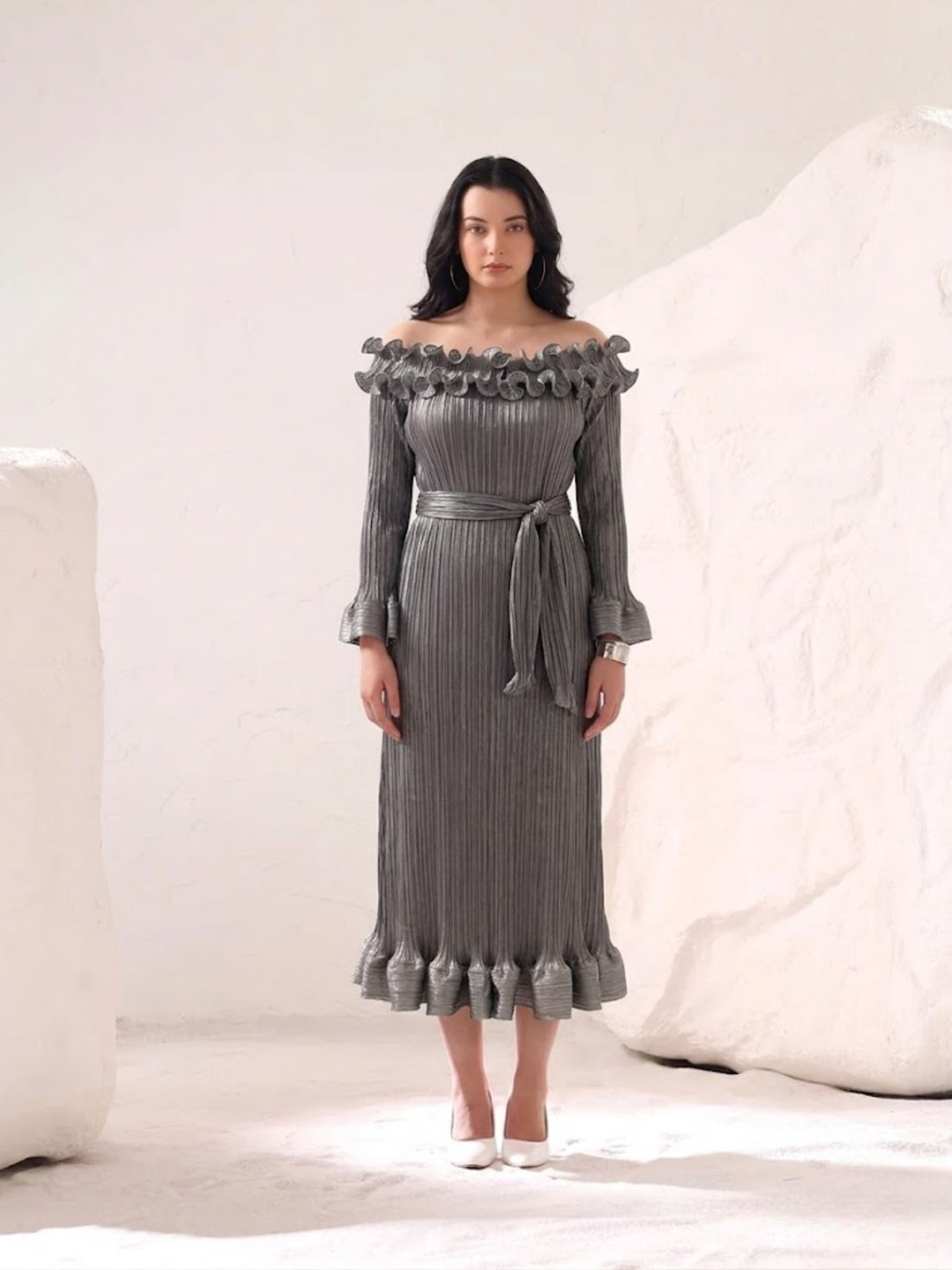 Glam Up with Show-Stopping Metallic Gowns and Long Sleeve Dresses