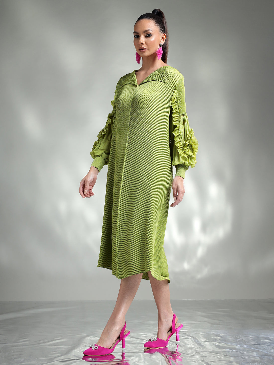 Onto By Aanchal's pleated fabric dresses employ premium-grade materials that not only retain their structure but also never lose their shape. This ensures that your pleated dress for women remains chic and elegant, no matter where you're going.