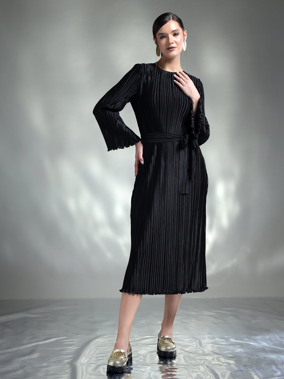 Pleated Midi Dress: This style, which falls in between mini and maxi, is a favorite among people who like a well-balanced, elegant appearance. Pleated dresses in midi designs, which fall below the knee and frequently reach the mid-calf, have a lovely silhouette that makes them ideal for semi-formal occasions, informal get-togethers, and workdays. Midi pleated dresses are stylish and functional when they have the ideal amount of flair and coverage.