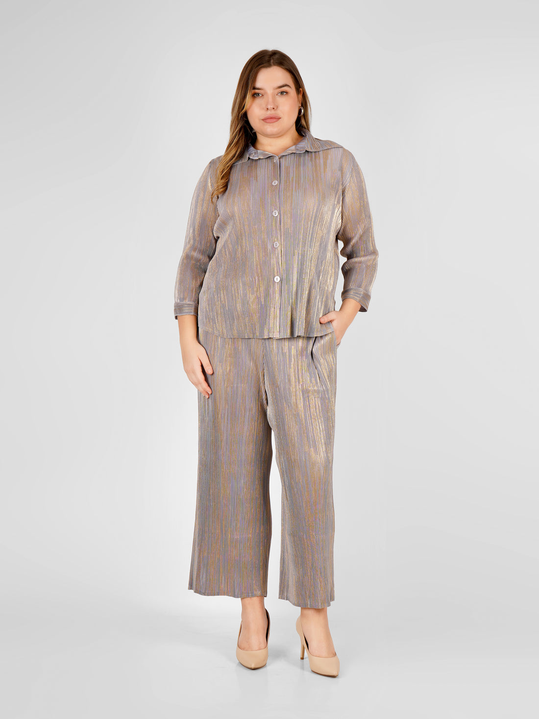 Elen Metallic Co-ord Set Dazzle in Decadence: Introducing Our Metallic Shirt-Style Coord Set!...