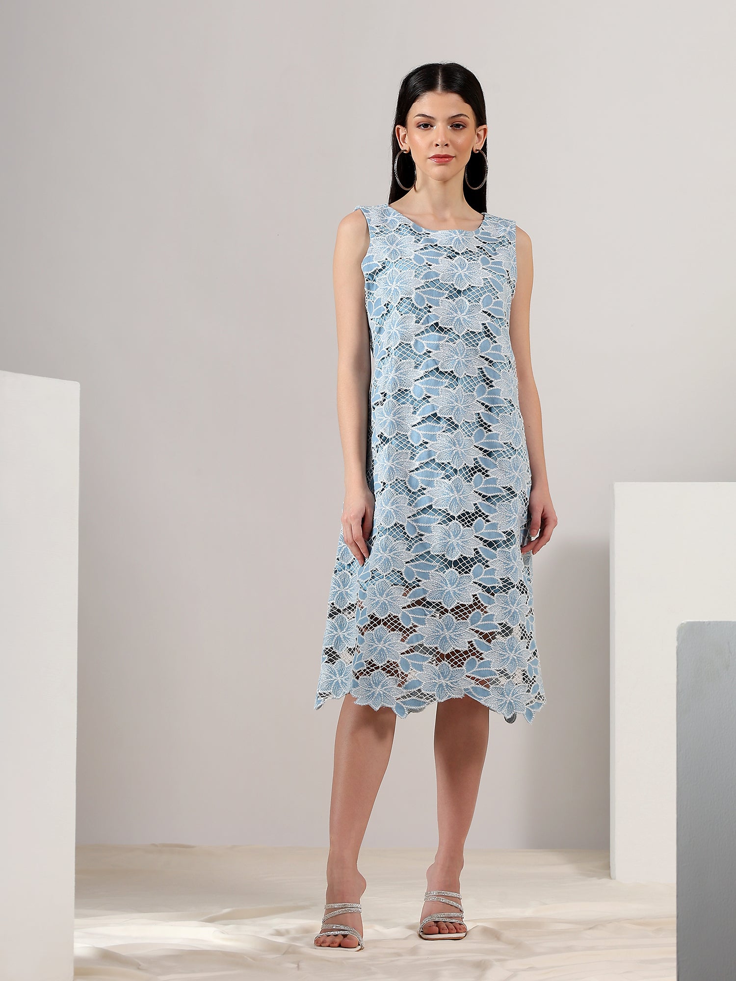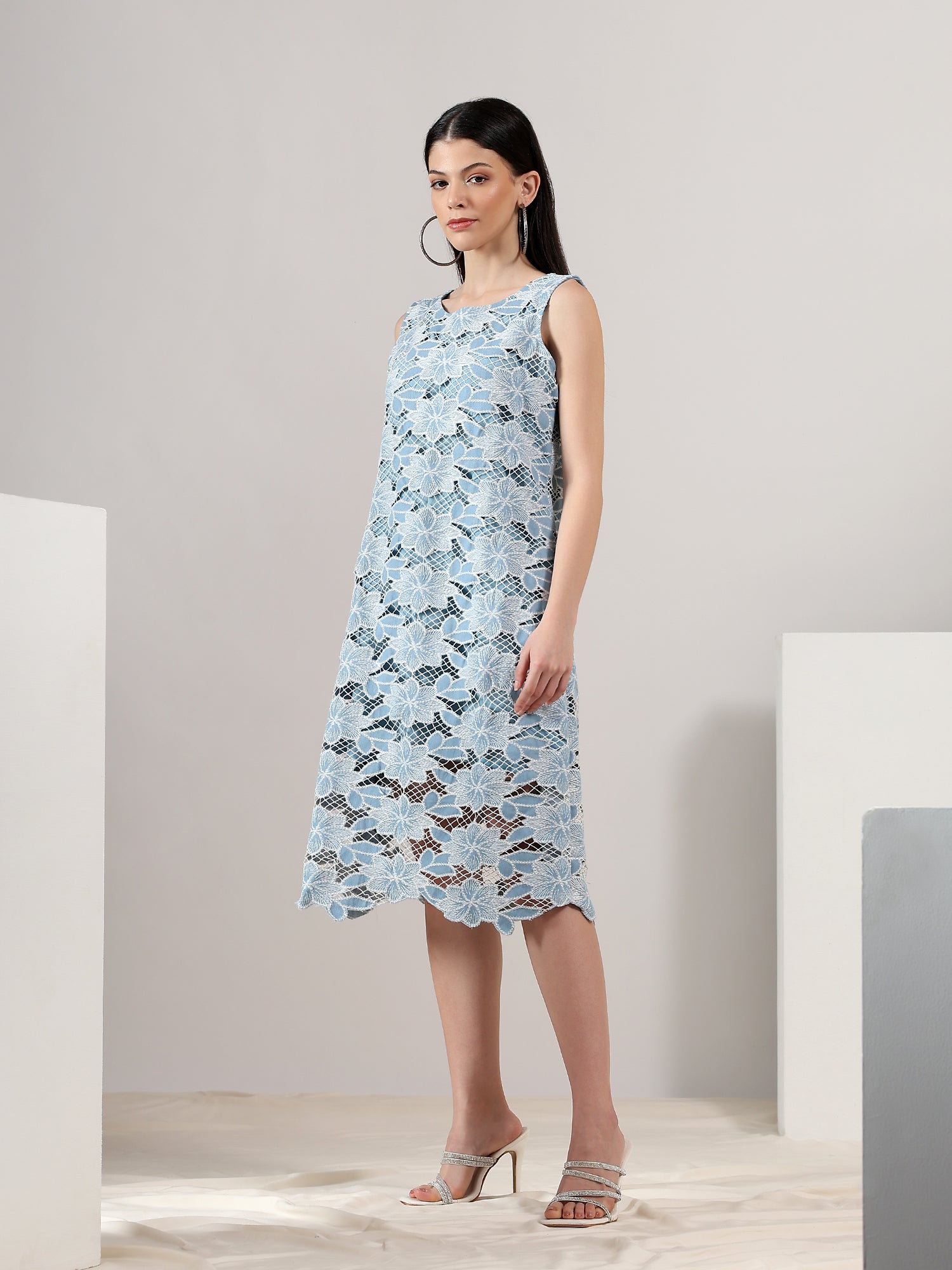 Ethereal Bloom – Sky Blue Cutwork Dress