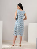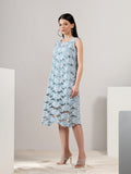 A vision of elegance and grace, this sky-blue cutwork dress is a true celebration of intricate craftsmanship. Designed for the modern muse, the floral lace-inspired cutwork pattern creates a delicate, airy texture, making it perfect for breezy spring and summer days.