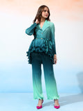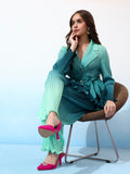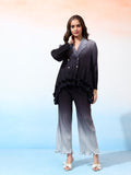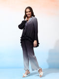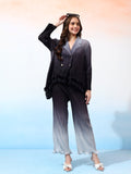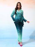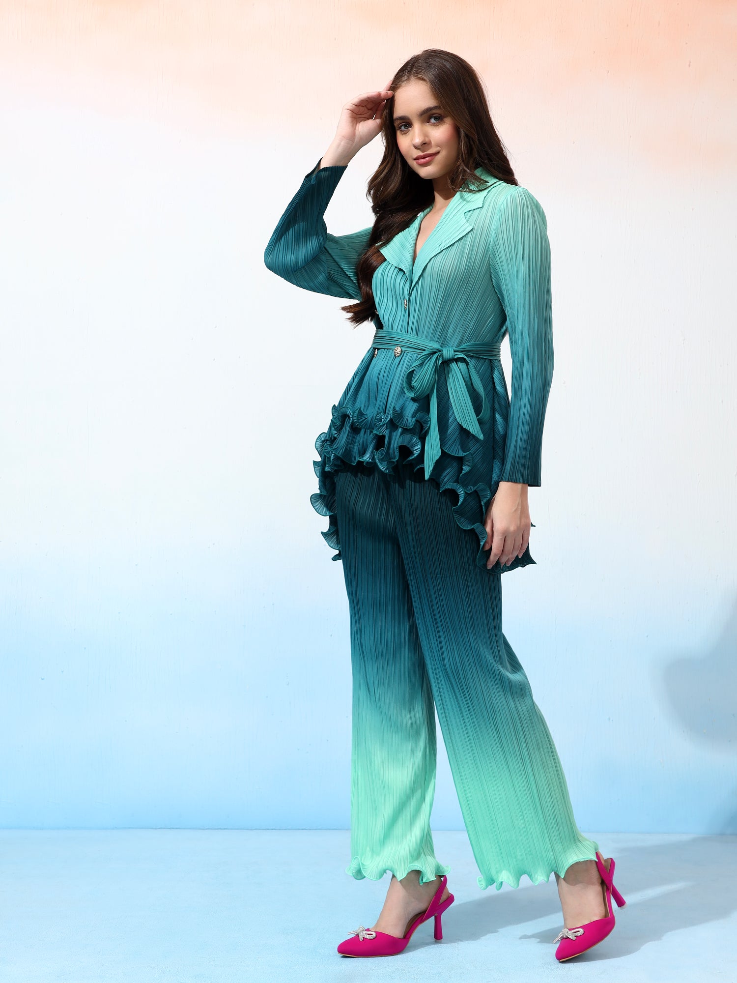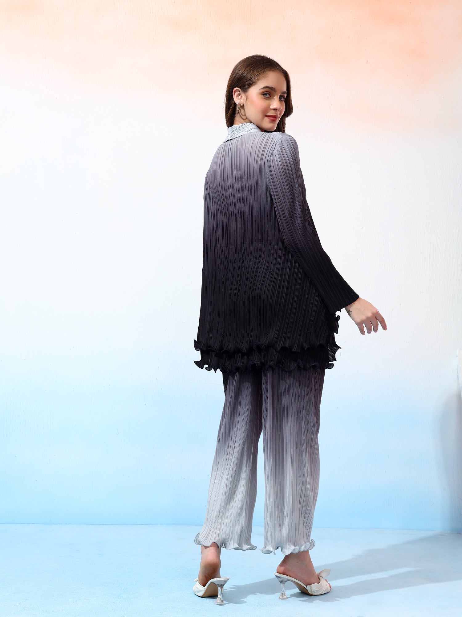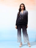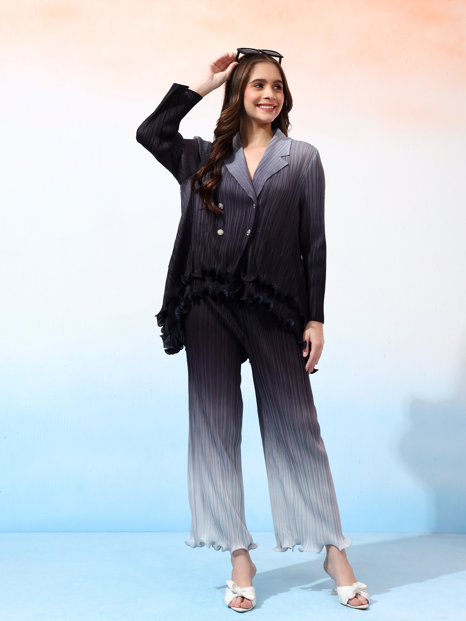 The shaded gradient effect enhances the richness of the set, making it stand out in a crowd. Paired with pleated pants, this coord set offers a complete and cohesive look that’s both warm and stylish—ideal for winter gatherings or professional settings where you want to make a statement.