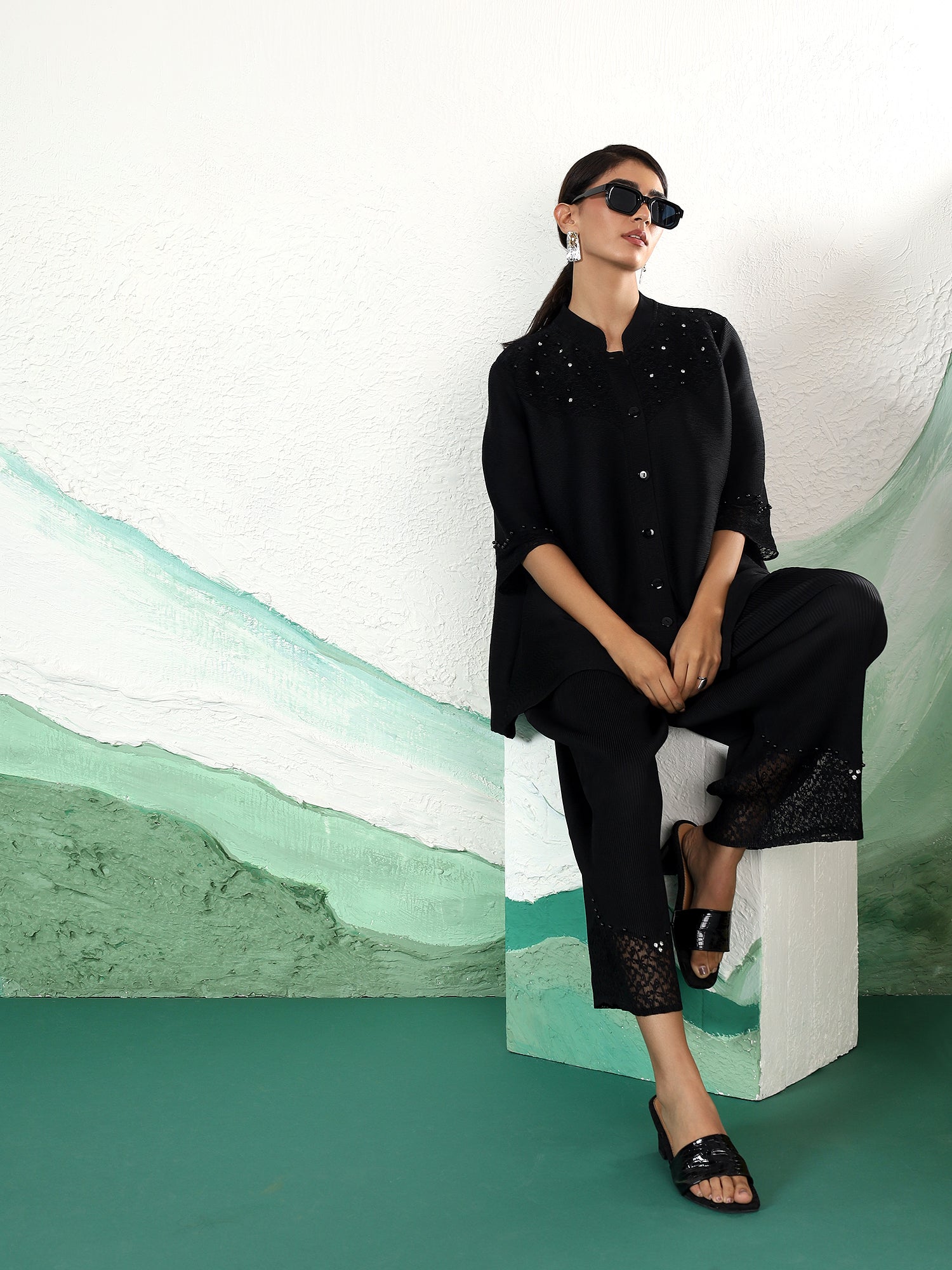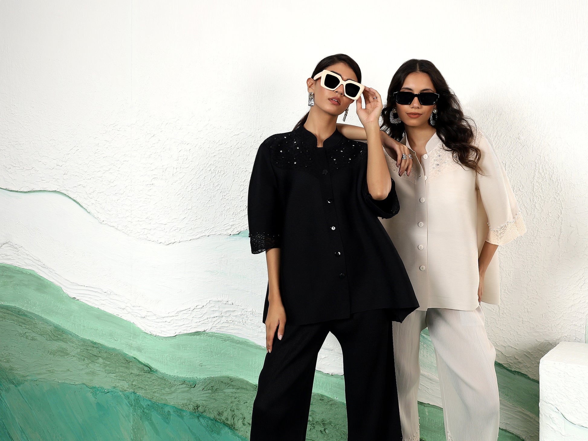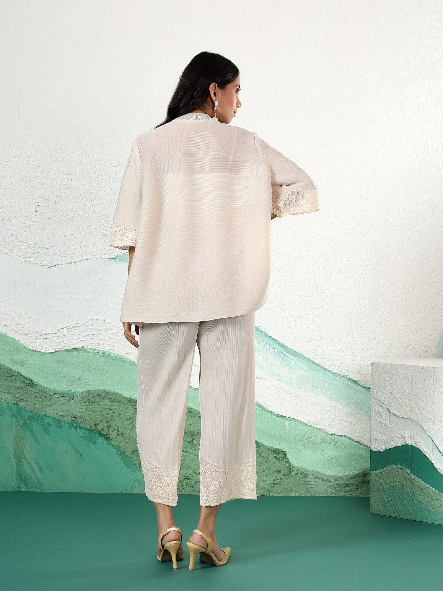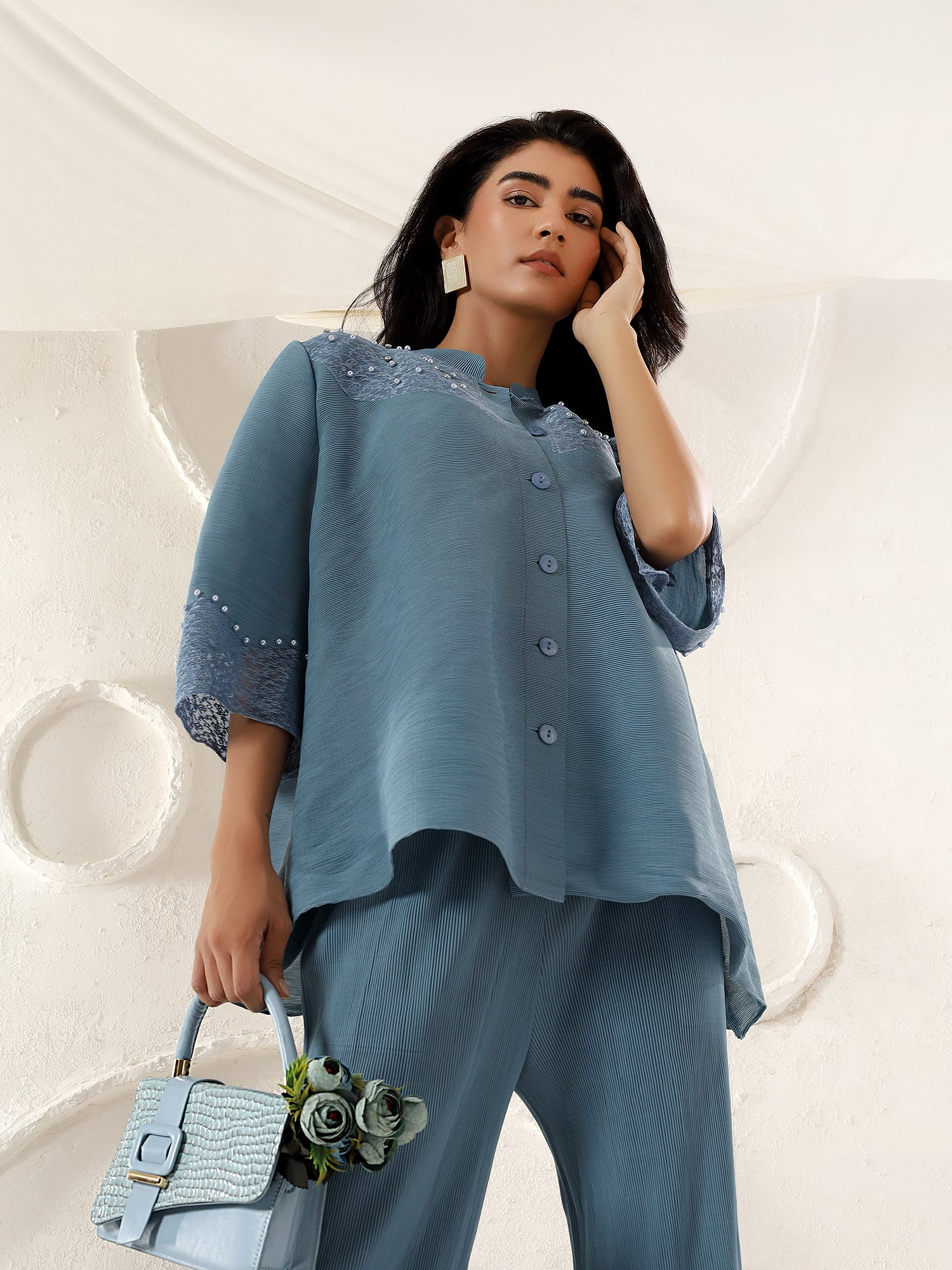 Introduction: Elevate your wardrobe with our latest offering – a stunning co-ord set that marries the timeless elegance of pleats with the delicate allure of lace detailing. Perfect for those who appreciate refined femininity with a touch of sophistication, this ensemble exudes effortless charm and grace. Whether you're attending a special occasion or simply want to add a touch of luxury to your everyday wardrobe, our Pleated Coord Set with Lace Detailing promises to make a statement with its impeccable craftsmanship and exquisite design.