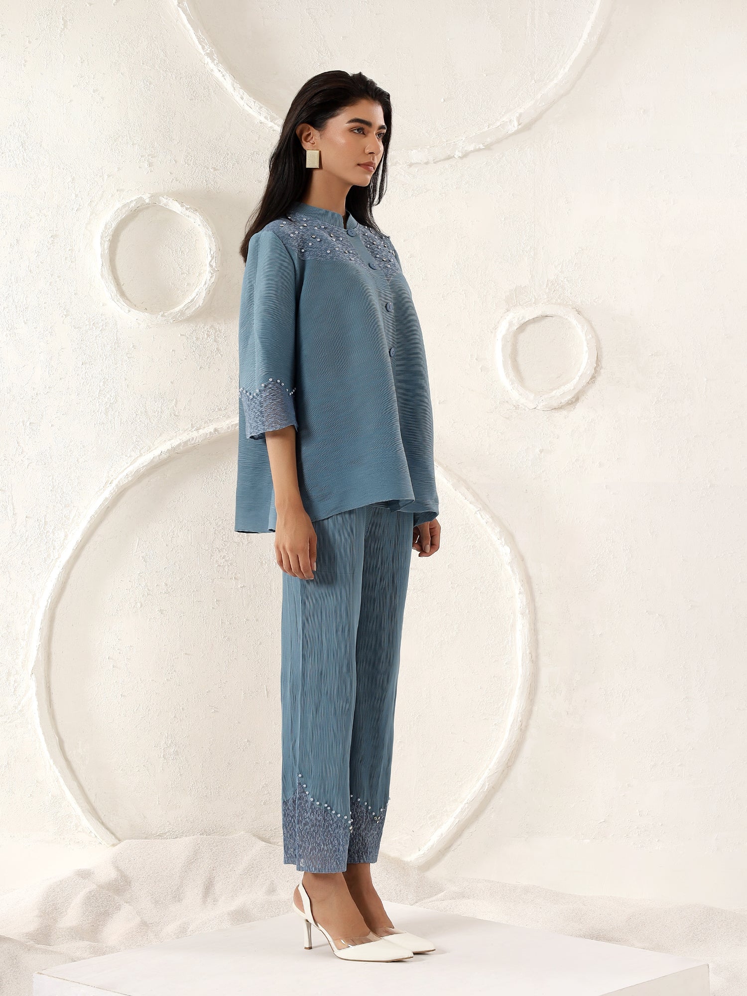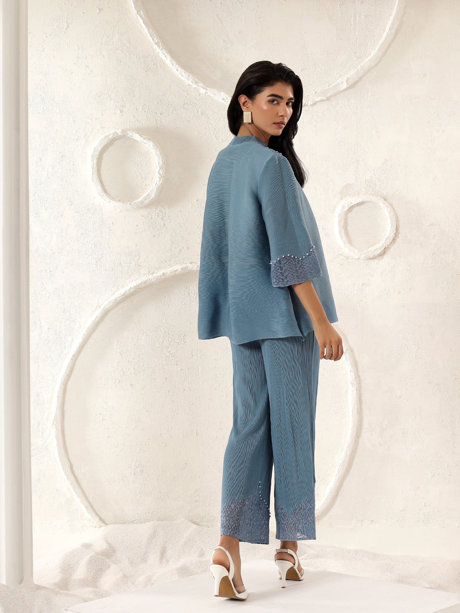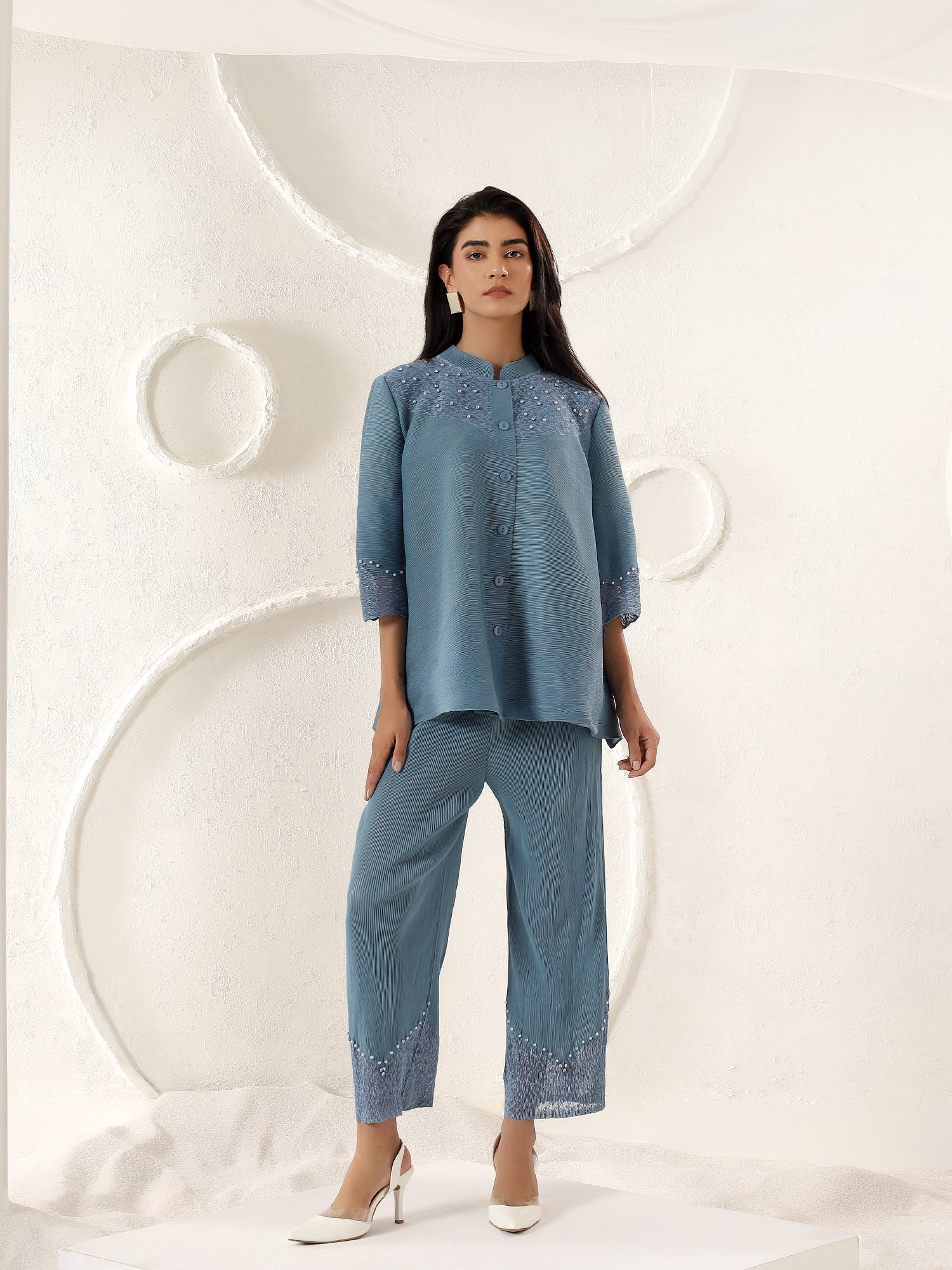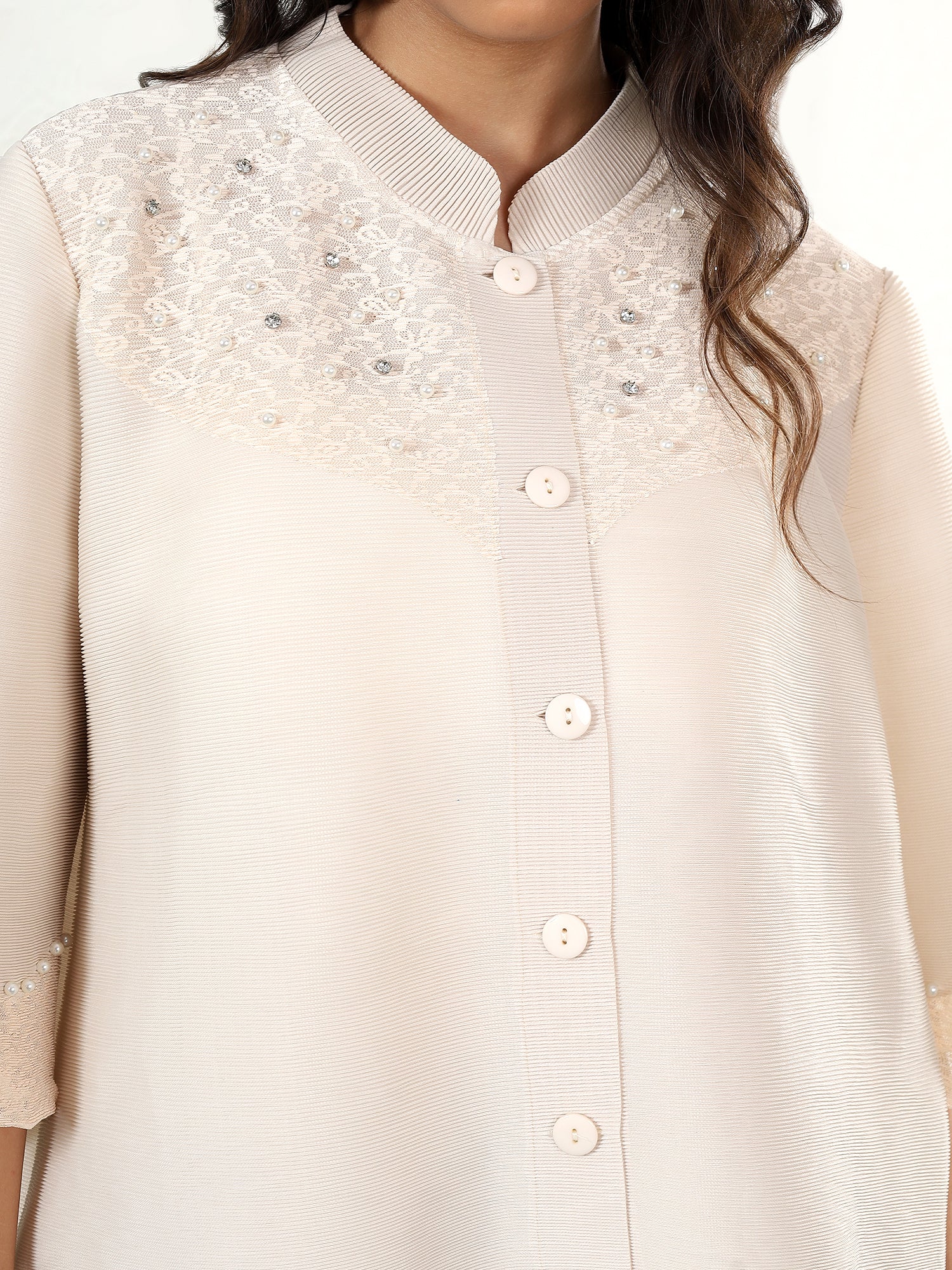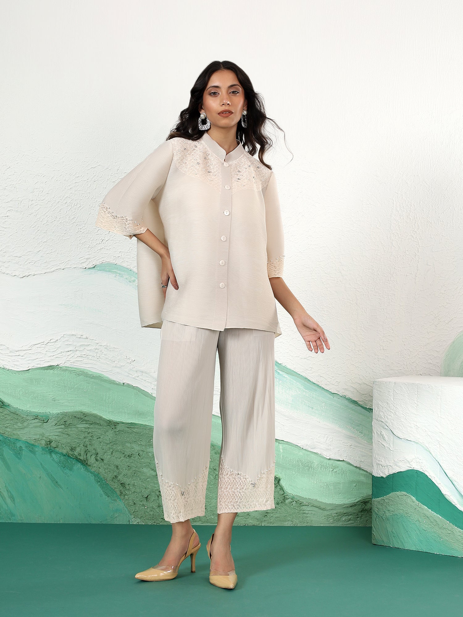 Introduction: Elevate your wardrobe with our latest offering – a stunning co-ord set that marries the timeless elegance of pleats with the delicate allure of lace detailing. Perfect for those who appreciate refined femininity with a touch of sophistication, this ensemble exudes effortless charm and grace. Whether you're attending a special occasion or simply want to add a touch of luxury to your everyday wardrobe, our Pleated Coord Set with Lace Detailing promises to make a statement with its impeccable craftsmanship and exquisite design.