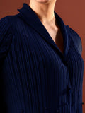 A softly structured top crafted in a fine pleated fabric, featuring a relaxed silhouette with a notched neckline and full sleeves. Subtle tonal embellishments add refined texture, while the fluid drape ensures effortless comfort—perfect for elevated everyday wear or understated evening styling.