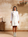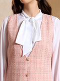 Tailored in soft pink tweed with delicate gold button detailing, the Roselle Dress is a perfect blend of sophistication and charm. Featuring a V-neckline and a straight-cut silhouette, it adds modern structure to a timeless fabric. Pair it with heels or boots for an effortlessly polished look — ideal for brunches, events, or chic day outings.