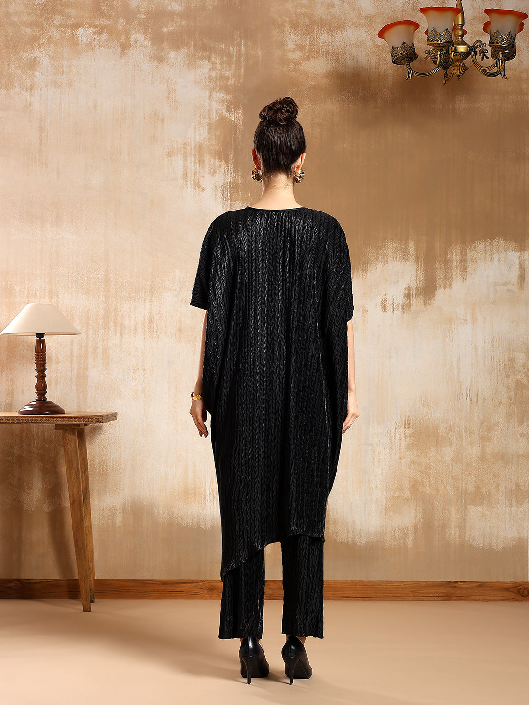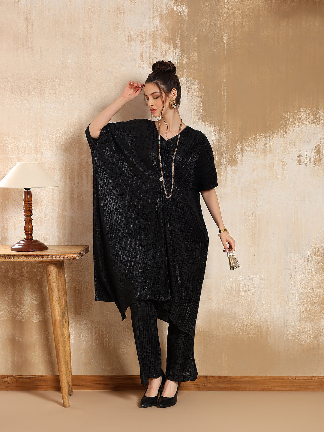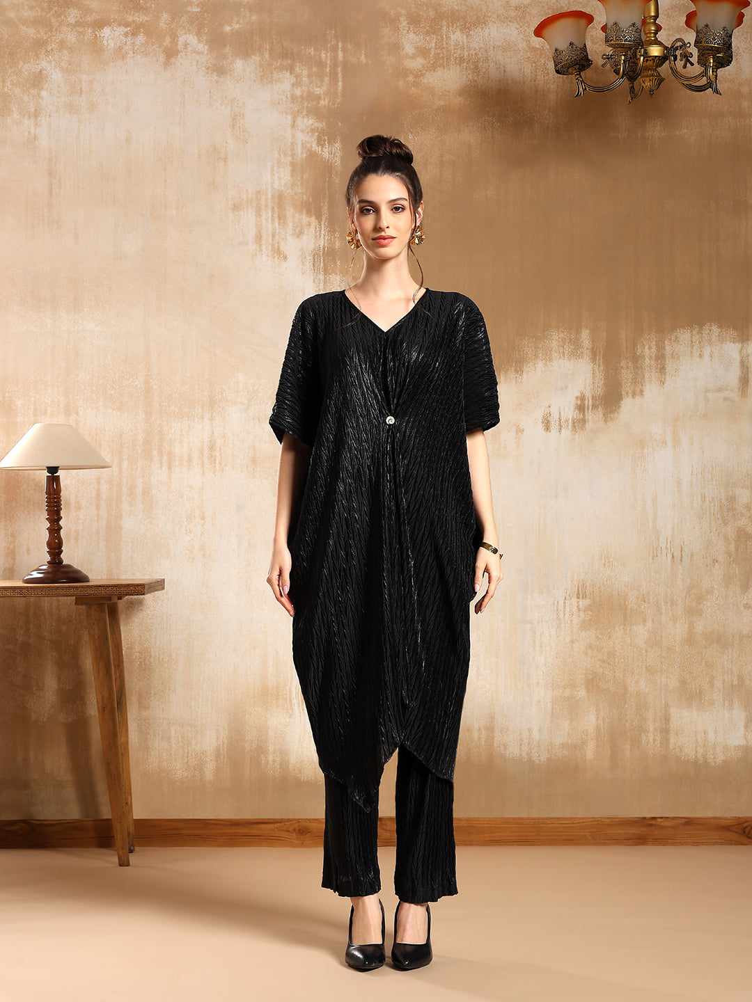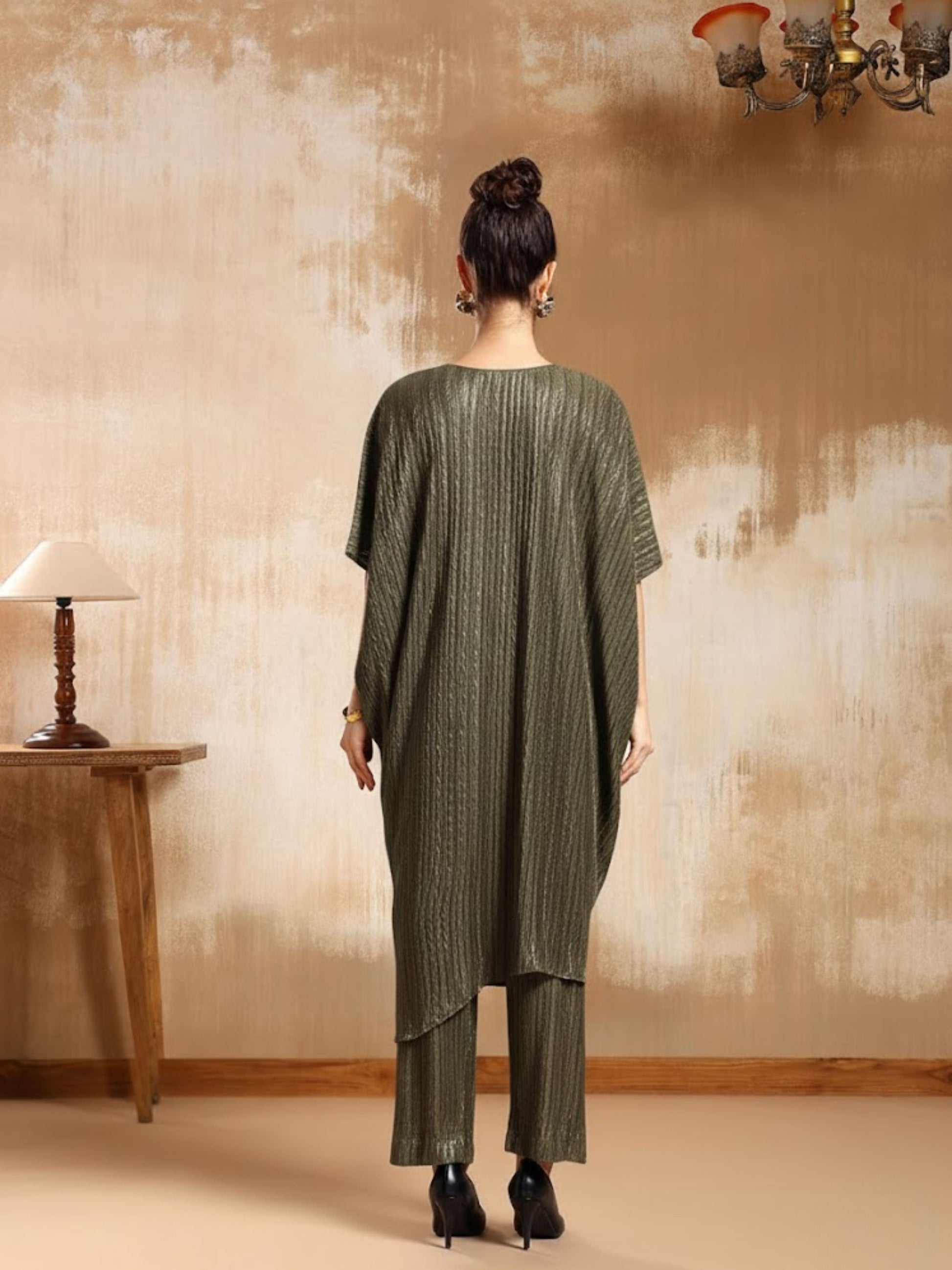 The Essence luxe Set brings effortless sophistication to your wardrobe. Designed in soft pleated fabric, this co-ord features a relaxed sleeveless top paired with fluid wide-leg bottoms, creating a look that moves with grace. Minimal yet striking, it blends comfort with modern elegance perfect for evenings out, travel days, or elevated everyday style.