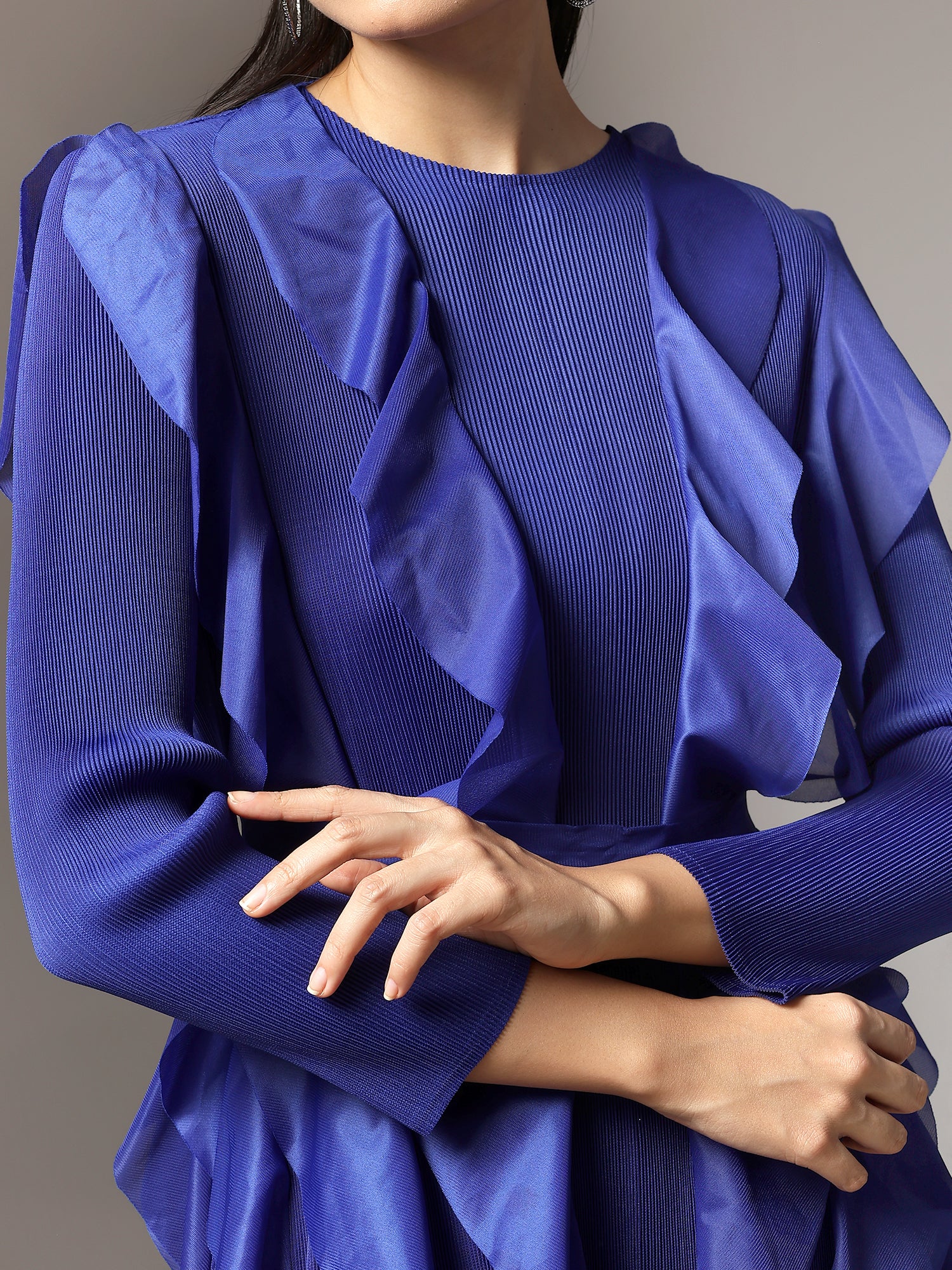 *(Pleated Fabrics do not cling to the body and has a tendency to expand , hence making it possible to fit to different sizes and Body Shapes).