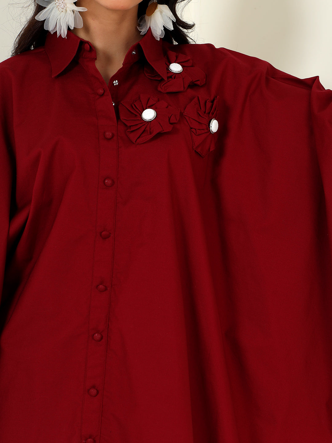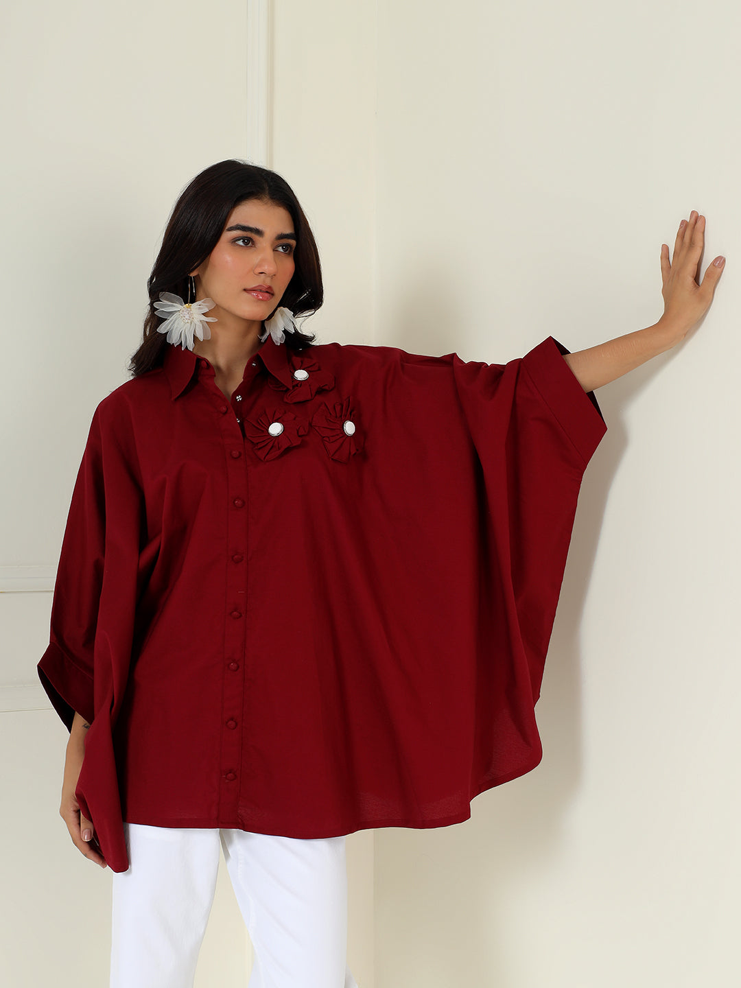 This chic denim-inspired tunic is all about effortless elegance with a touch of modern flair. Featuring delicate 3D floral appliqué detailing on the front, a structured yet flowy silhouette, and wide sleeves, it’s a versatile piece that works for both casual and semi-formal outings. Paired here with ivory straight-fit trousers, the contrast makes the look stand out—perfect for day-to-evening wear.