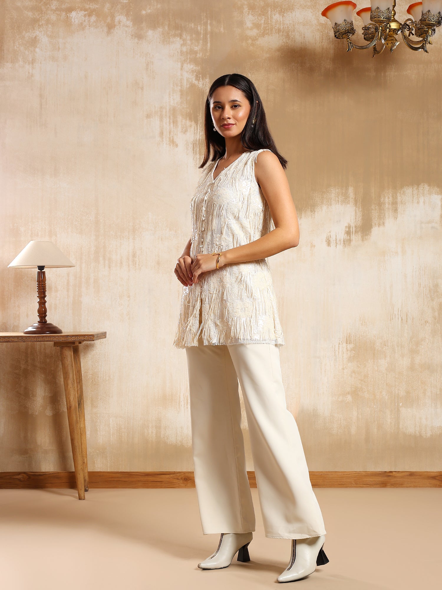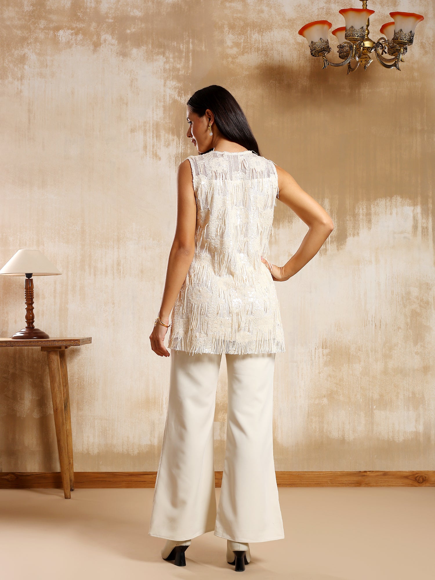 Top- Sequin and fringe mesh Bottom- Heavy Crepe |
