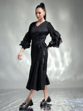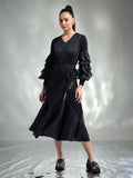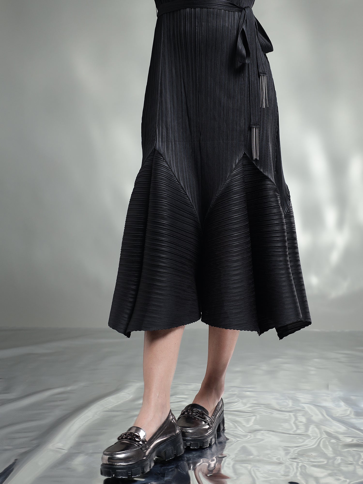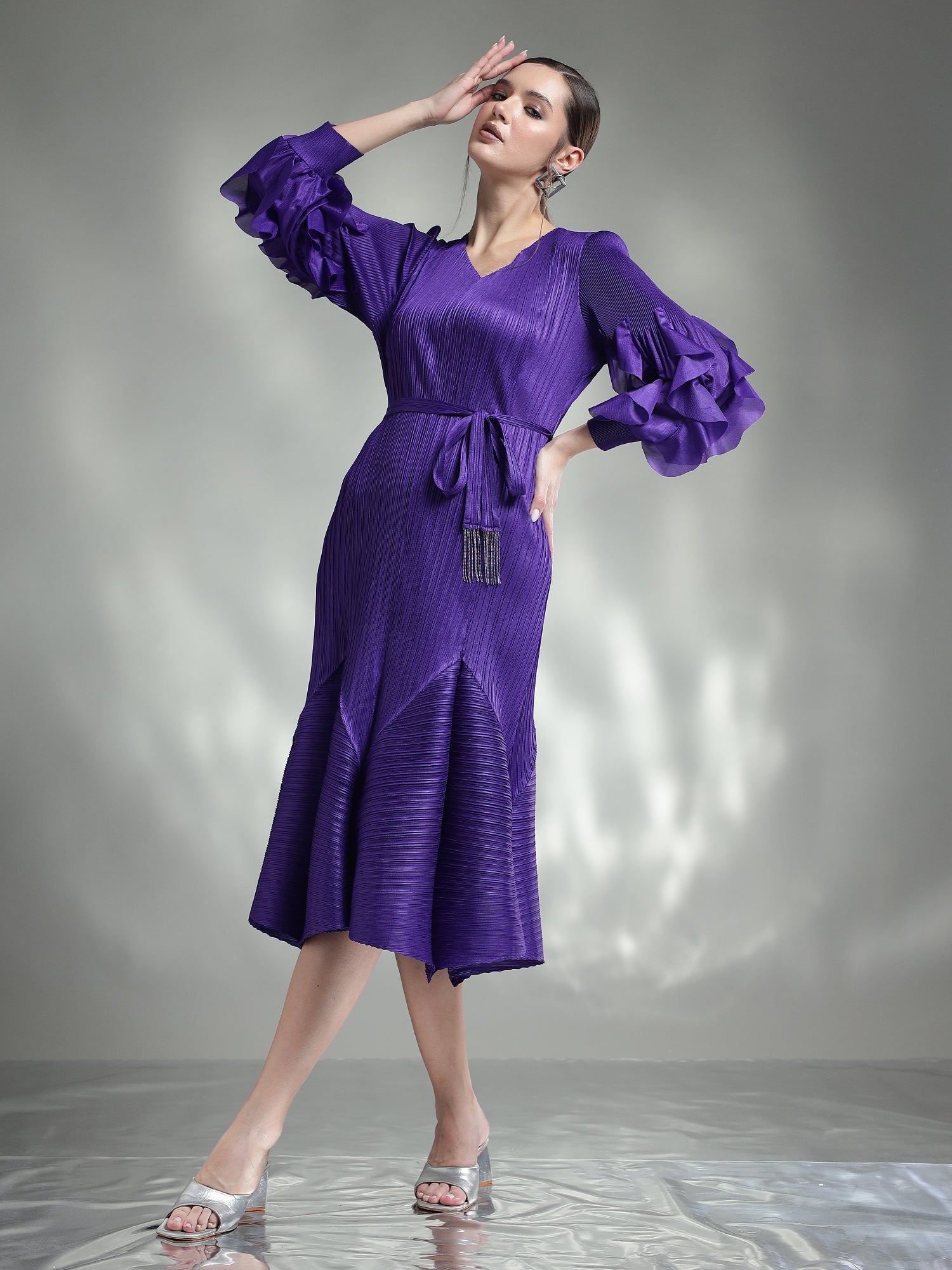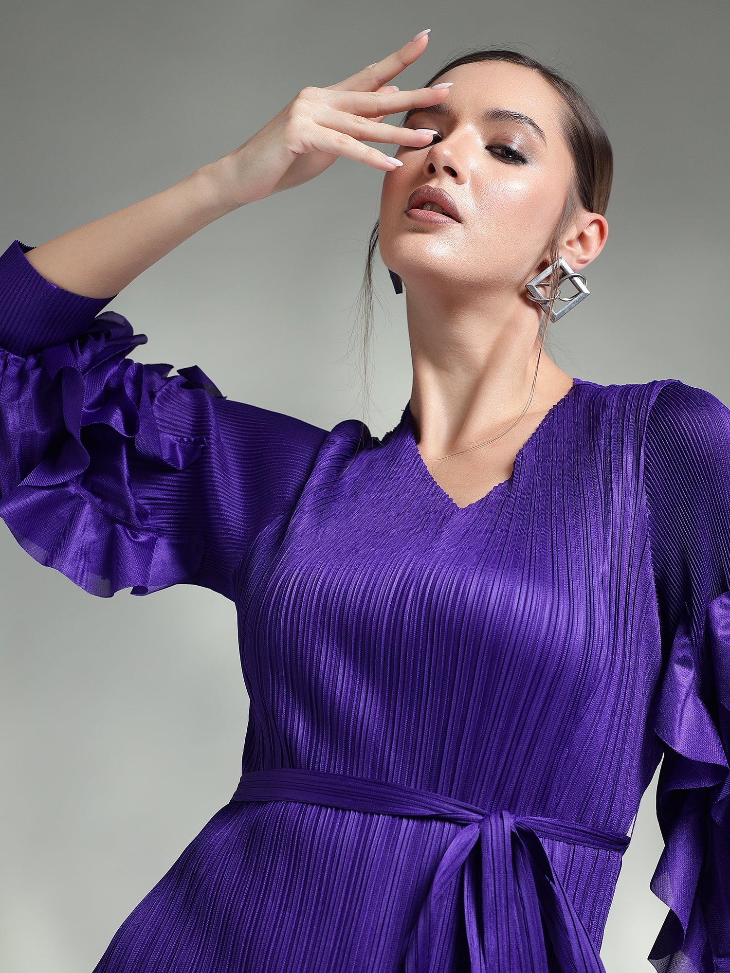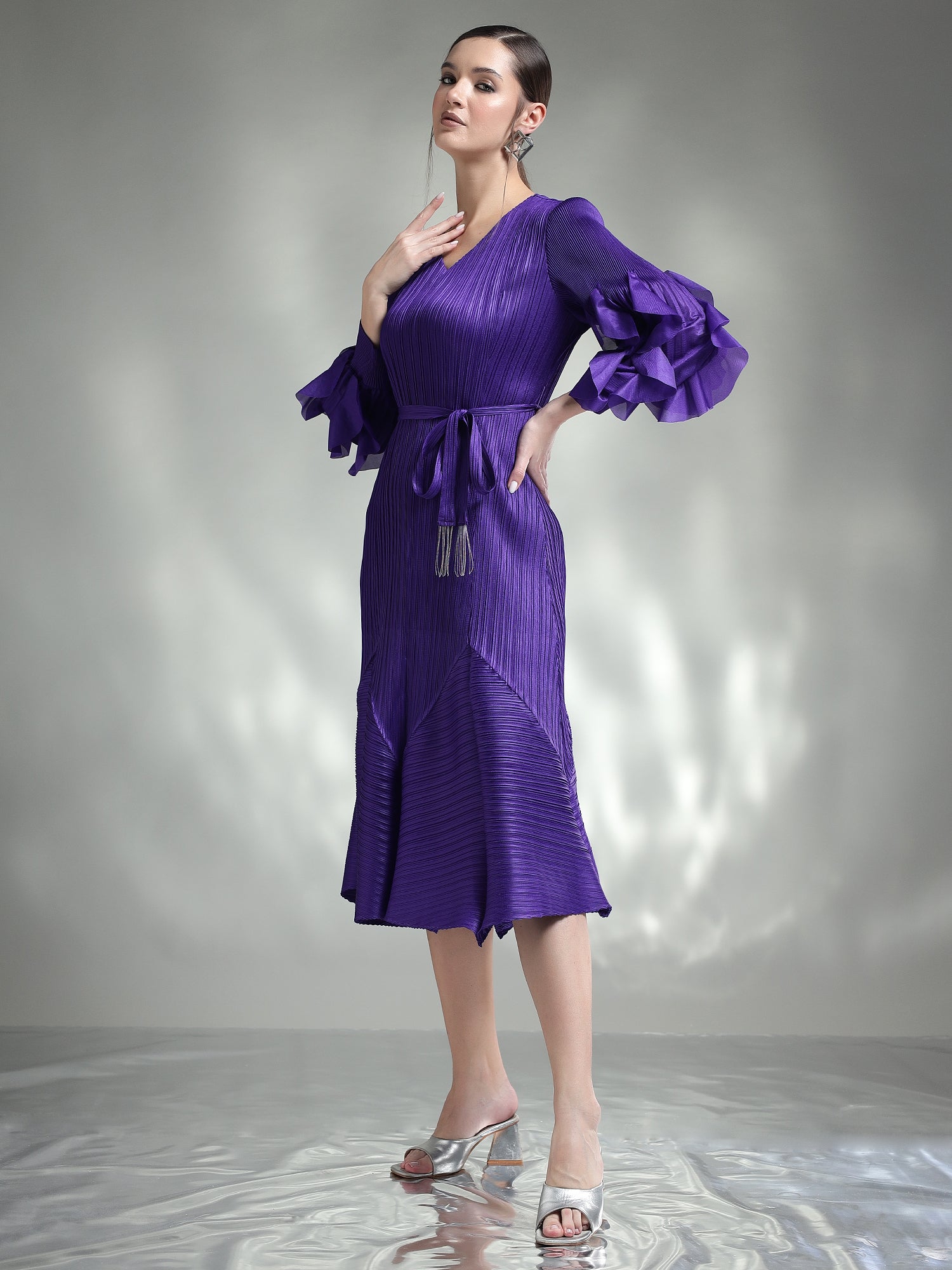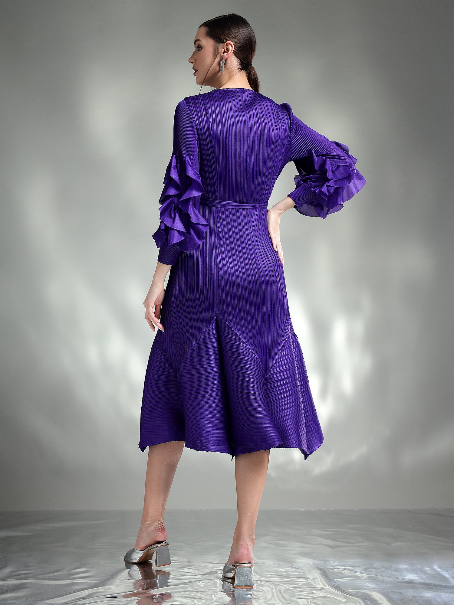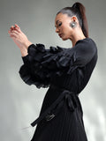 Exude elegance in this sophisticated pleated dress, designed to captivate with its timeless charm. Available in two stunning colors – classic Black and regal Purple – this dress is perfect for any special occasion.
