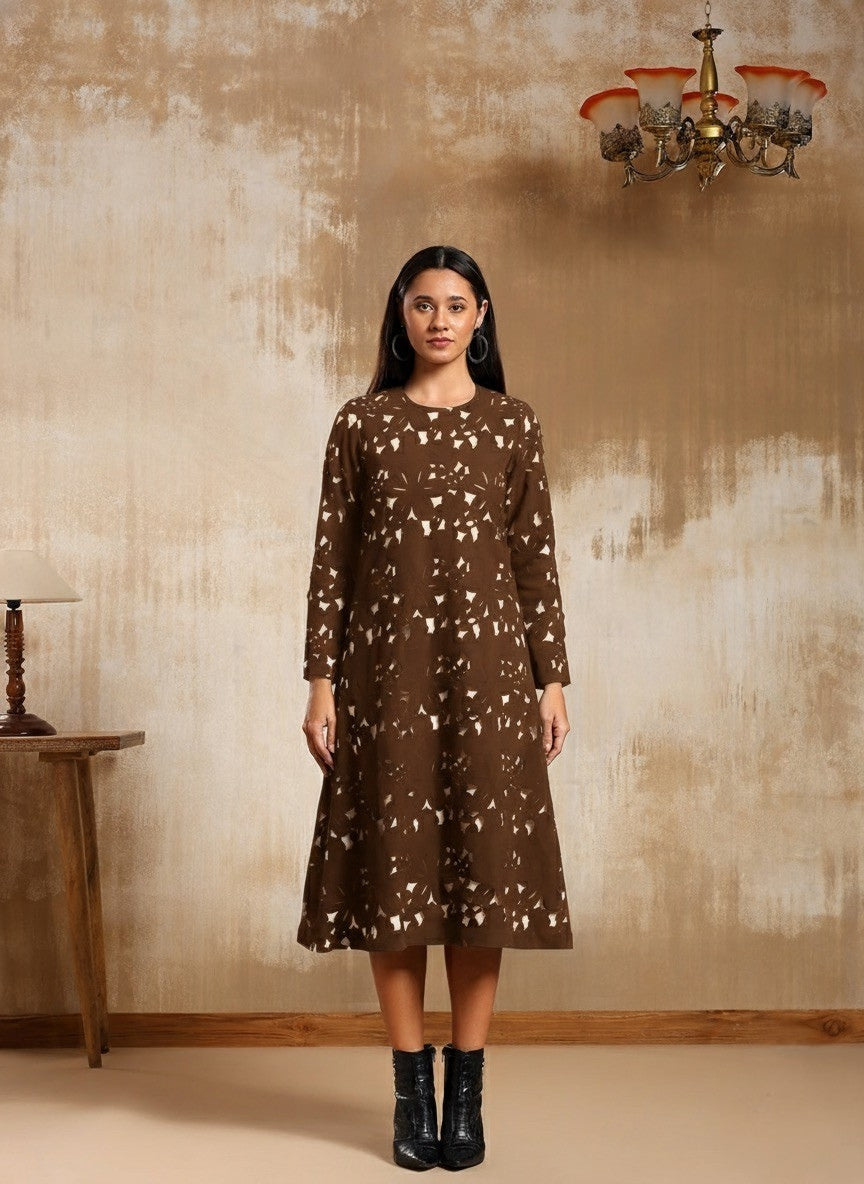 The Elyor Dress redefines winter elegance with a modern, sculpted silhouette. Crafted in soft suede-touch fabric, it features intricate laser-cut detailing that plays beautifully with light and texture. Designed in a deep black hue, the dress combines warmth with sophistication — making it a perfect statement for evening gatherings and festive occasions. With its structured fit, full sleeves, and clean midi length, the Elyor Dress embodies timeless charm with a contemporary edge.