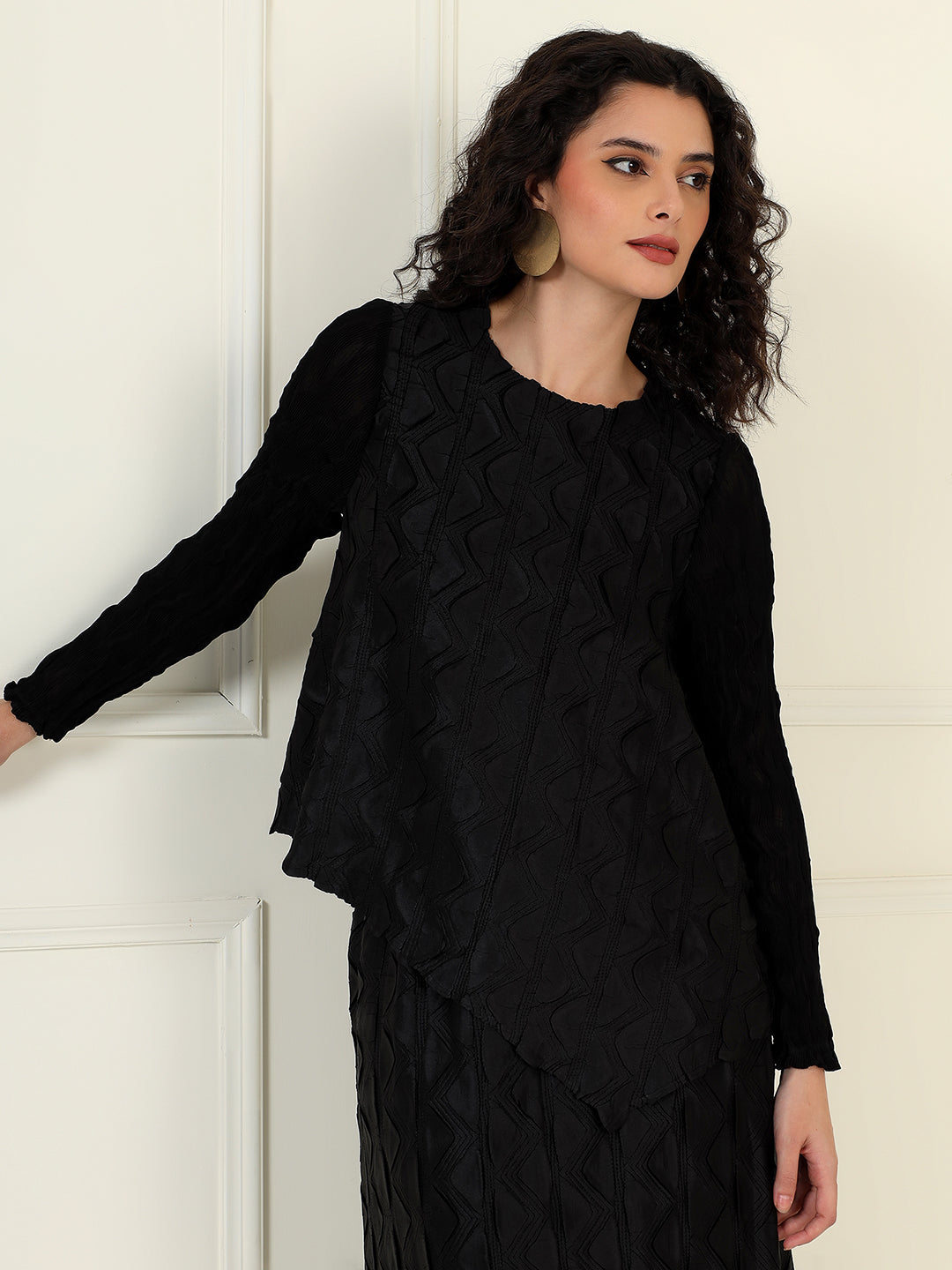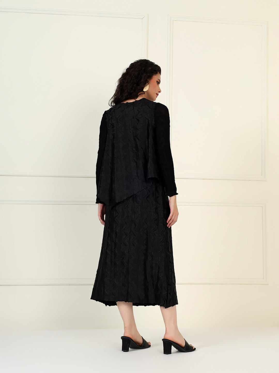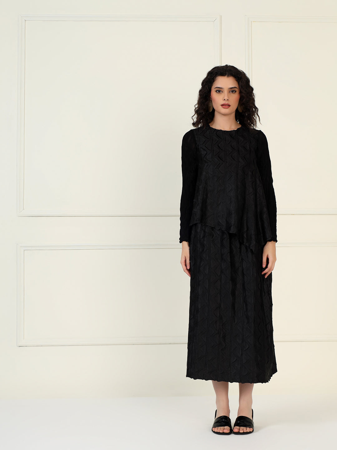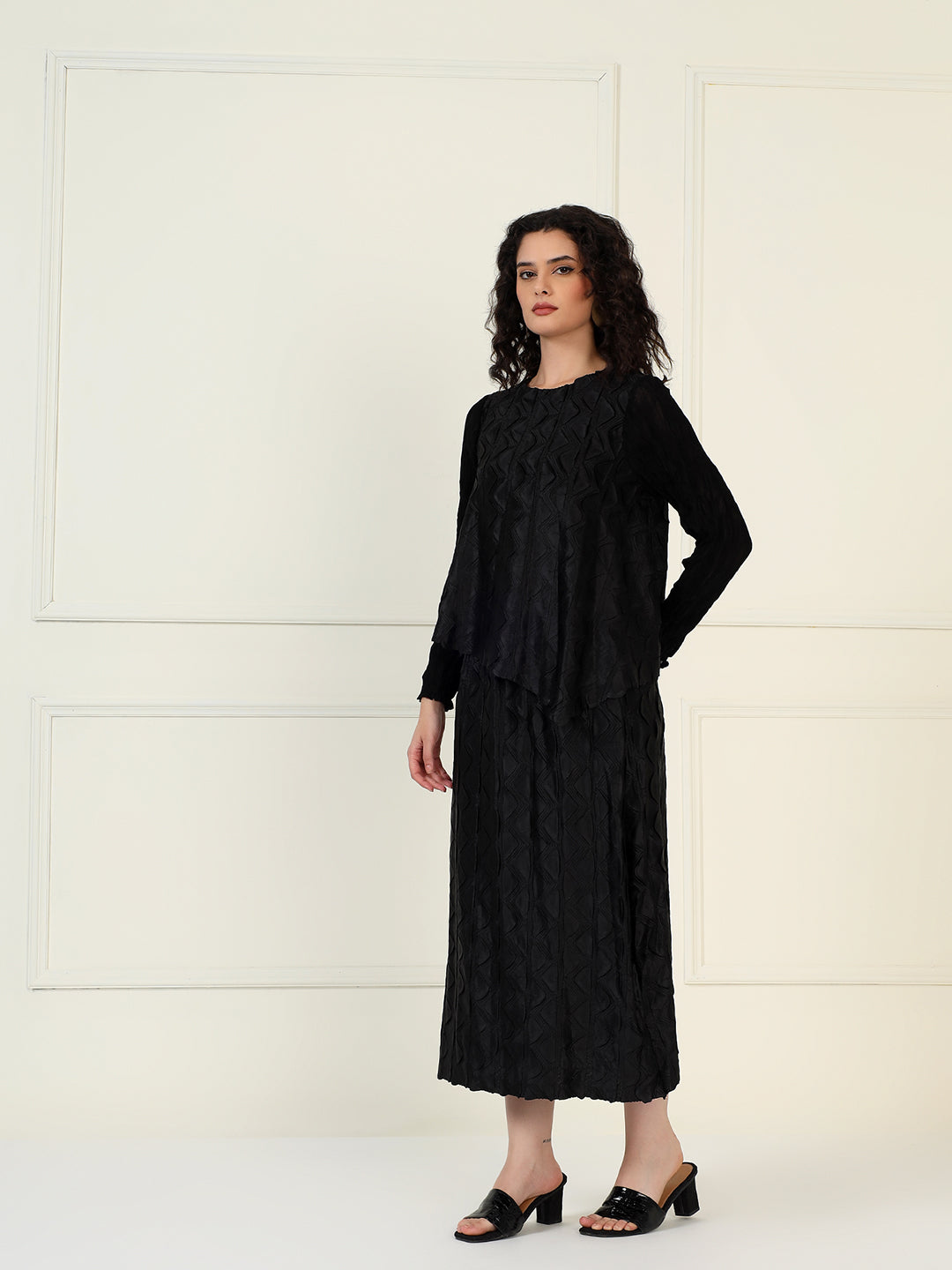 Effortlessly elegant, the Elysia Skirt Set features a textured silhouette with a fluid, asymmetric top paired with a matching midi skirt. Designed for comfort and sophistication, this look transitions seamlessly from day to evening with timeless charm.