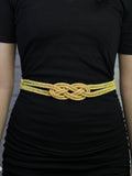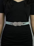 A statement belt adorned with a mesmerizing crystal knot design, exuding luxury and grace. This intricately woven piece effortlessly elevates any outfit, making it a must-have accessory for special occasions. Available in Silver, Gold, and Rose Gold.
