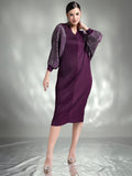 Available in four stunning shades – Black for timeless glamour, Olive Green for a bold statement, Mocha for understated luxury, and Purple for a touch of royalty – this dress is perfect for evening parties, cocktail events, or festive celebrations.
