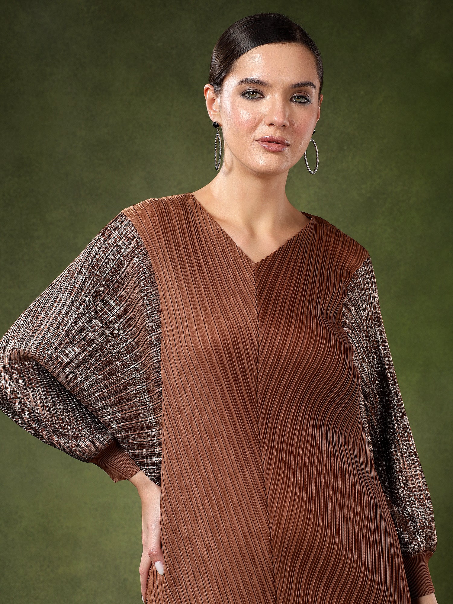 *(Pleated Fabrics do not cling to the body and has a tendency to expand , hence making it possible to fit to different sizes and Body Shapes).