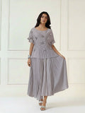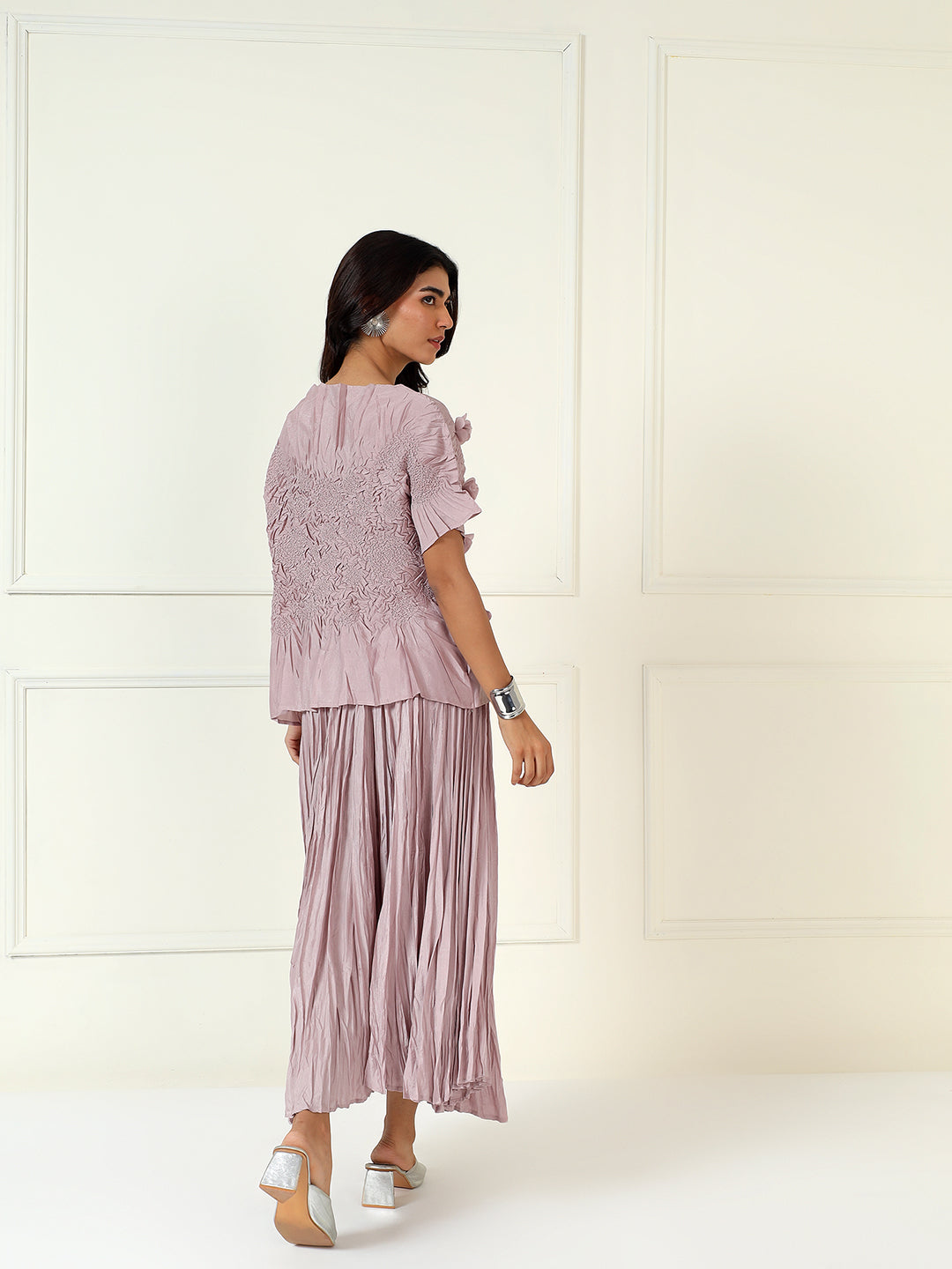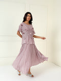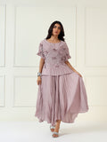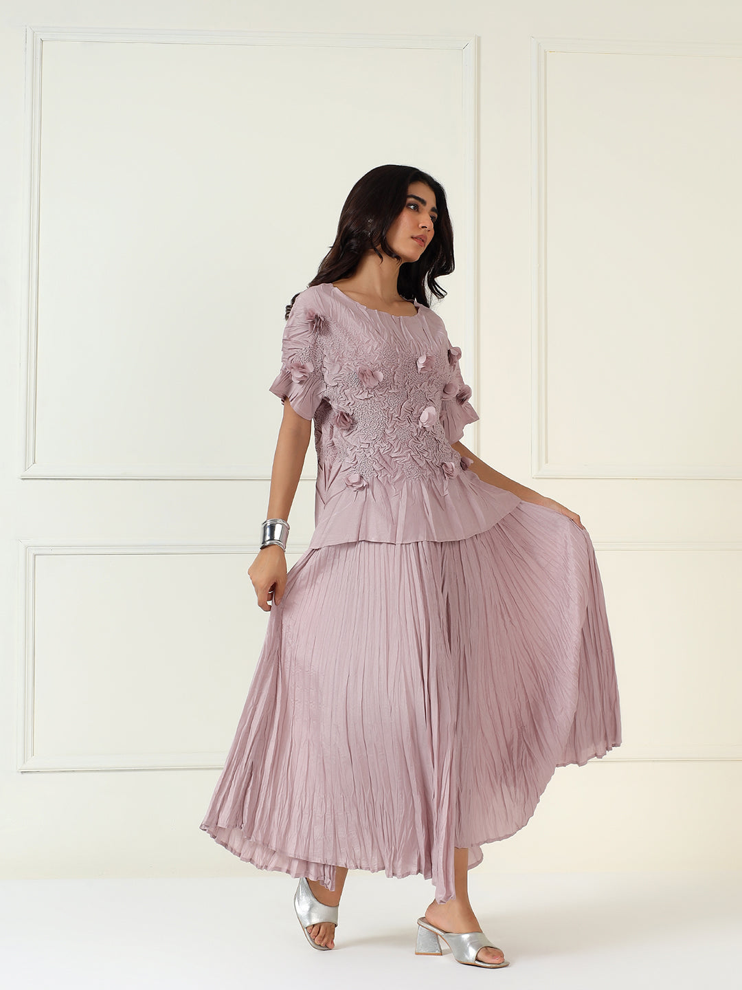 The Iris Dawn Skirt Set captures the essence of soft sophistication in a dreamy lilac tone. Featuring a beautifully textured top with delicate 3D floral accents and a flowy pleated skirt, this ensemble blends femininity with modern ease. Lightweight and effortlessly graceful, it’s perfect for festive brunches, intimate gatherings, or elegant evenings. Style it with metallic heels and statement jewelry for a refined, ethereal look.