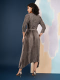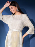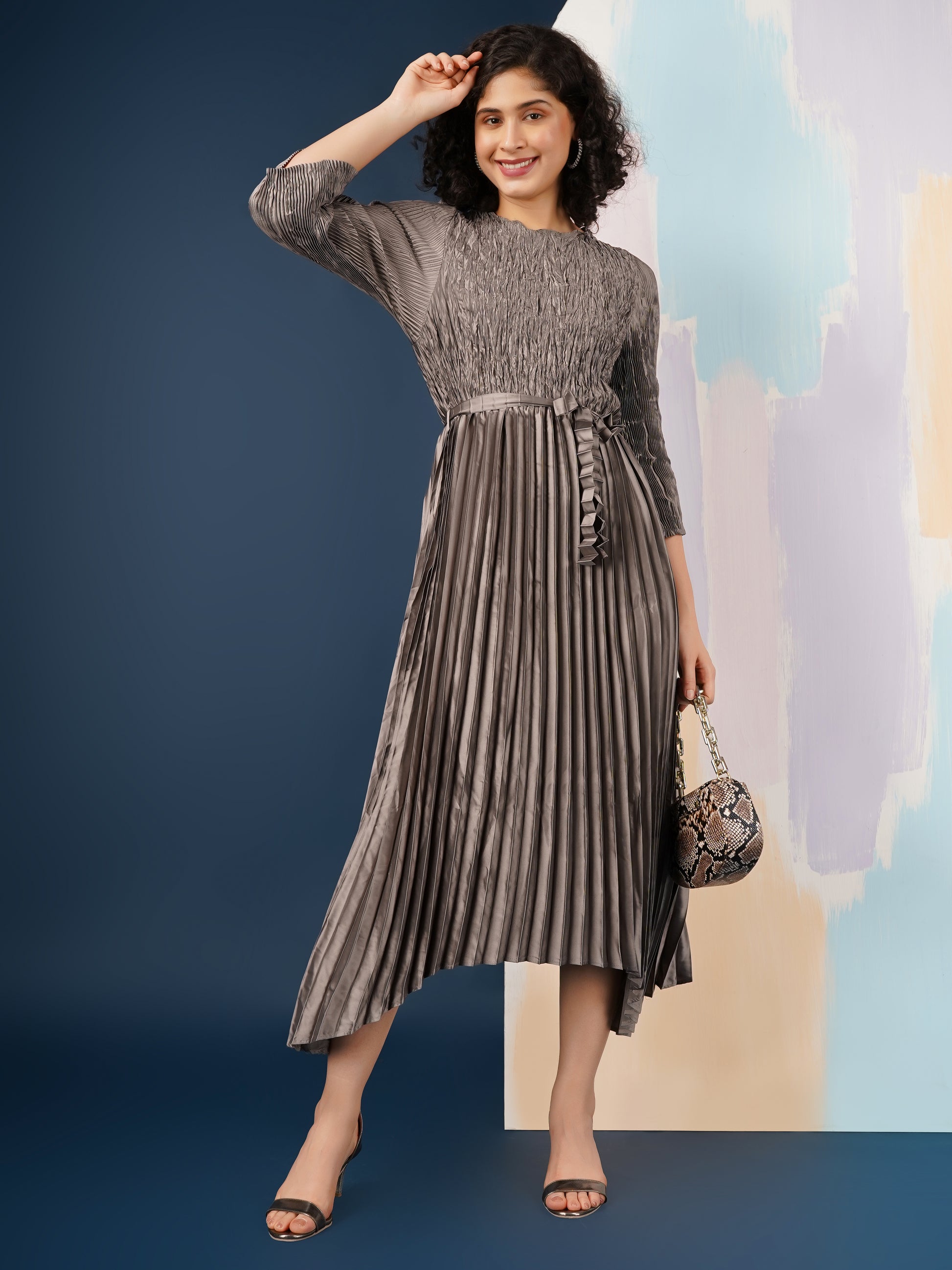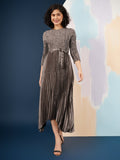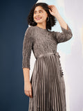 This dress is ideal for special occasions, from evening galas to festive parties. Pair it with your favorite accessories and heels to complete the look, and let the dazzling metallic finish make you the center of attention.