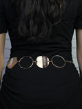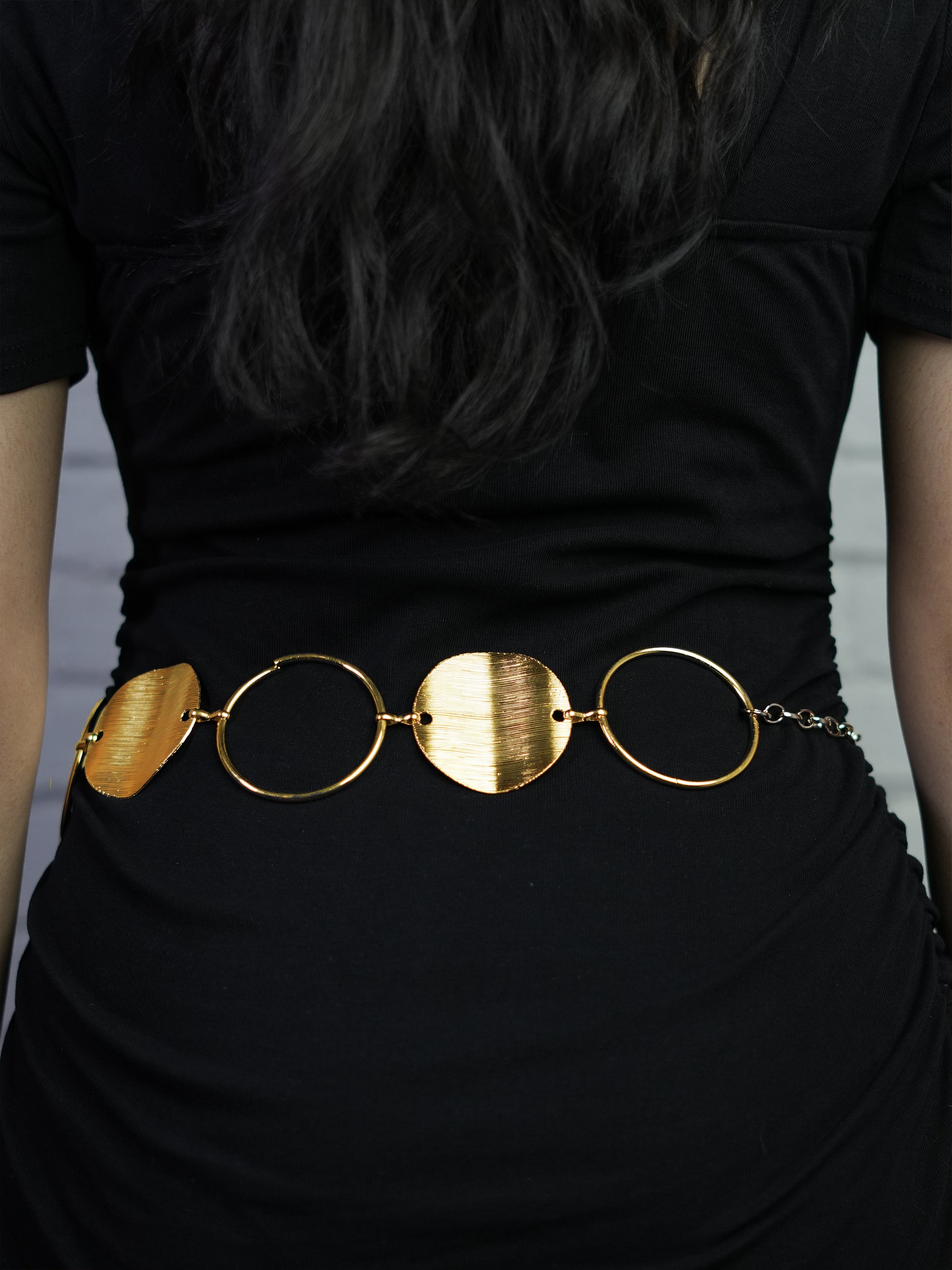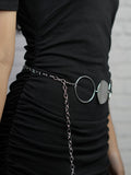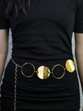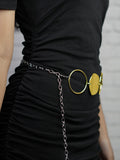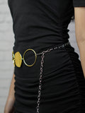 Inspired by celestial elegance, the Lunar Orbit Belt features a stunning interplay of metallic circles, evoking the phases of the moon. Its chain-link structure offers an adjustable fit, making it the perfect accent piece for both casual and dressy looks