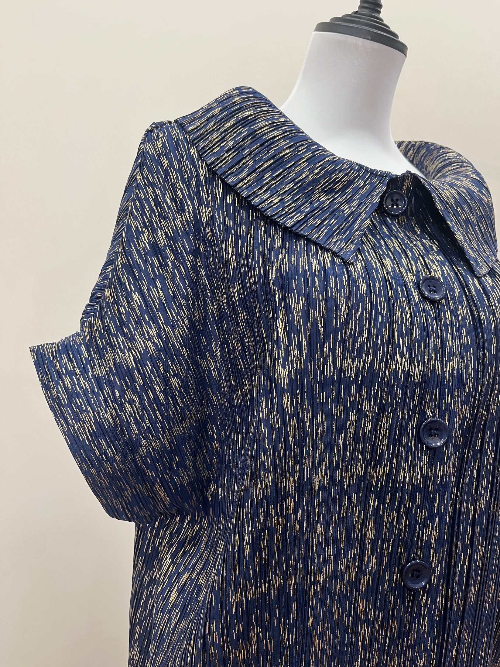 Elevate your wardrobe with our LuxeLine Button Metallic Dress — where structure meets sophistication. Crafted in premium pleated fabric with a soft metallic sheen, this longline silhouette is designed for comfort and impact. The bold collared neckline and full button-down front make it versatile enough to wear as a statement top, tunic, or dress.