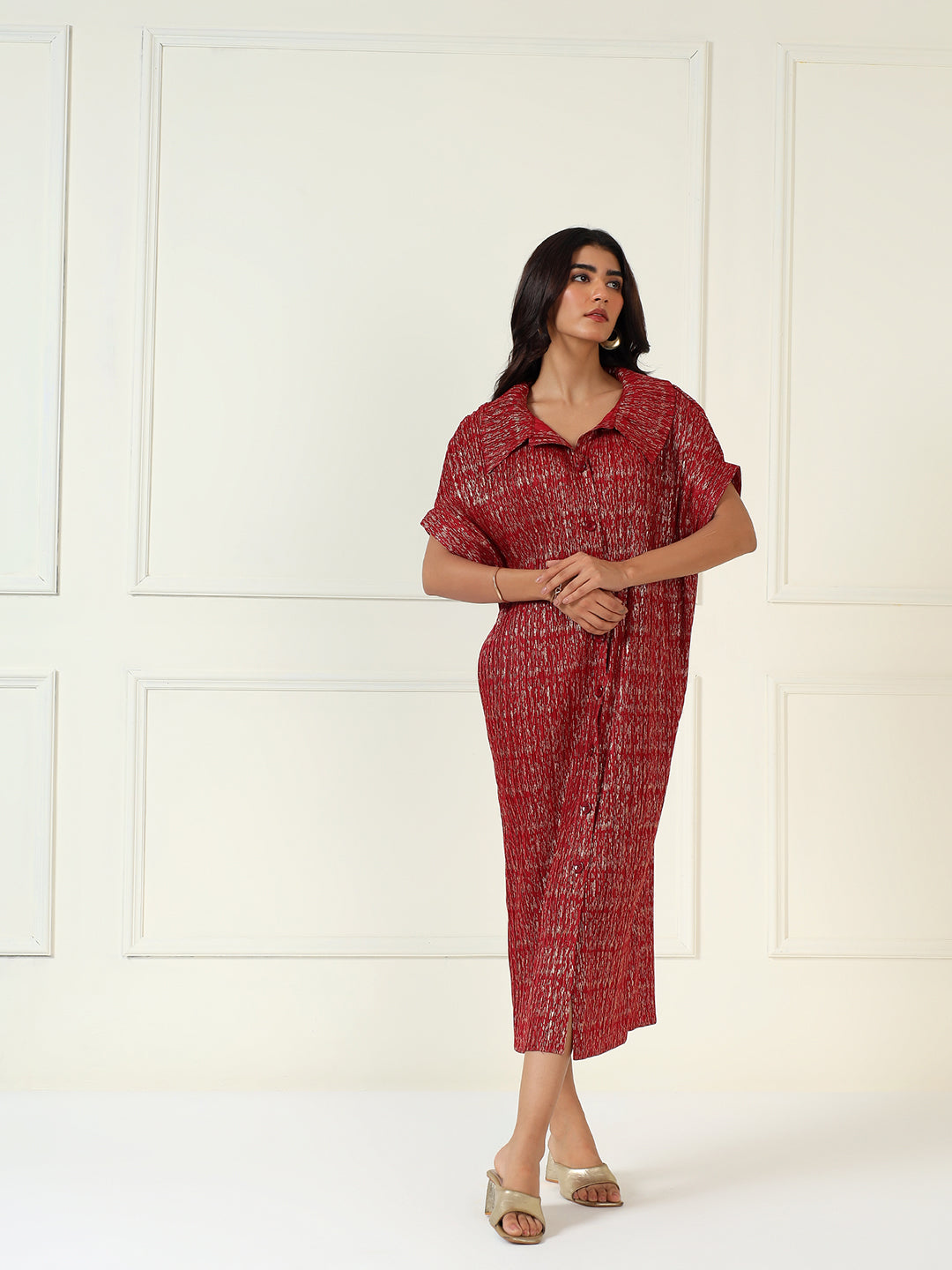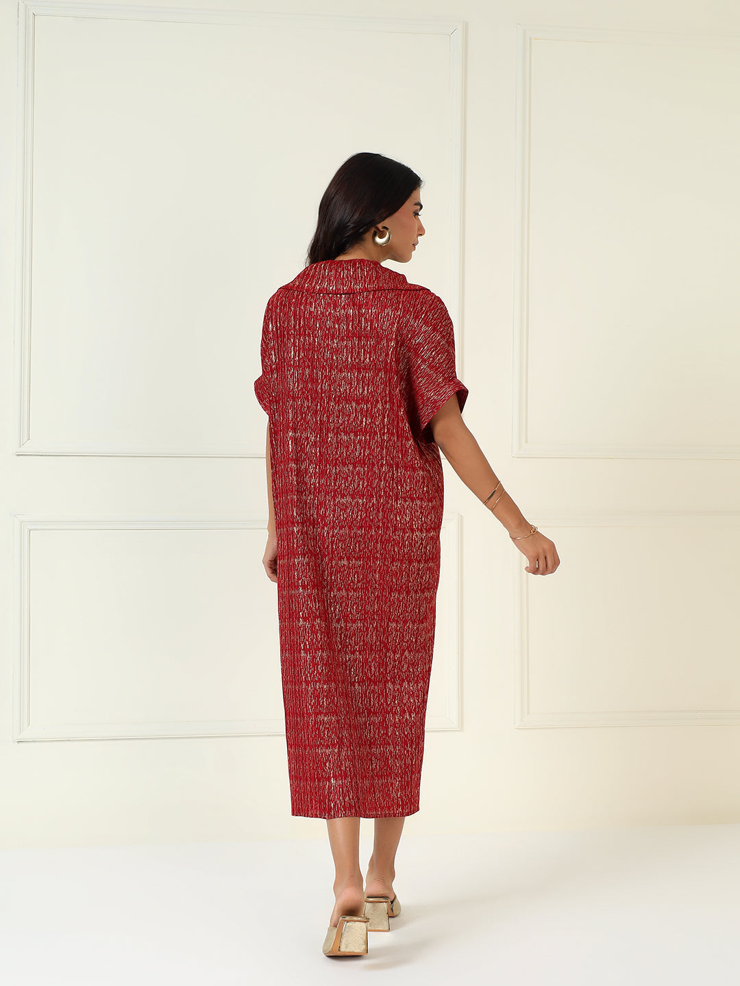 Elevate your wardrobe with our LuxeLine Button Metallic Dress — where structure meets sophistication. Crafted in premium pleated fabric with a soft metallic sheen, this longline silhouette is designed for comfort and impact. The bold collared neckline and full button-down front make it versatile enough to wear as a statement top, tunic, or dress.