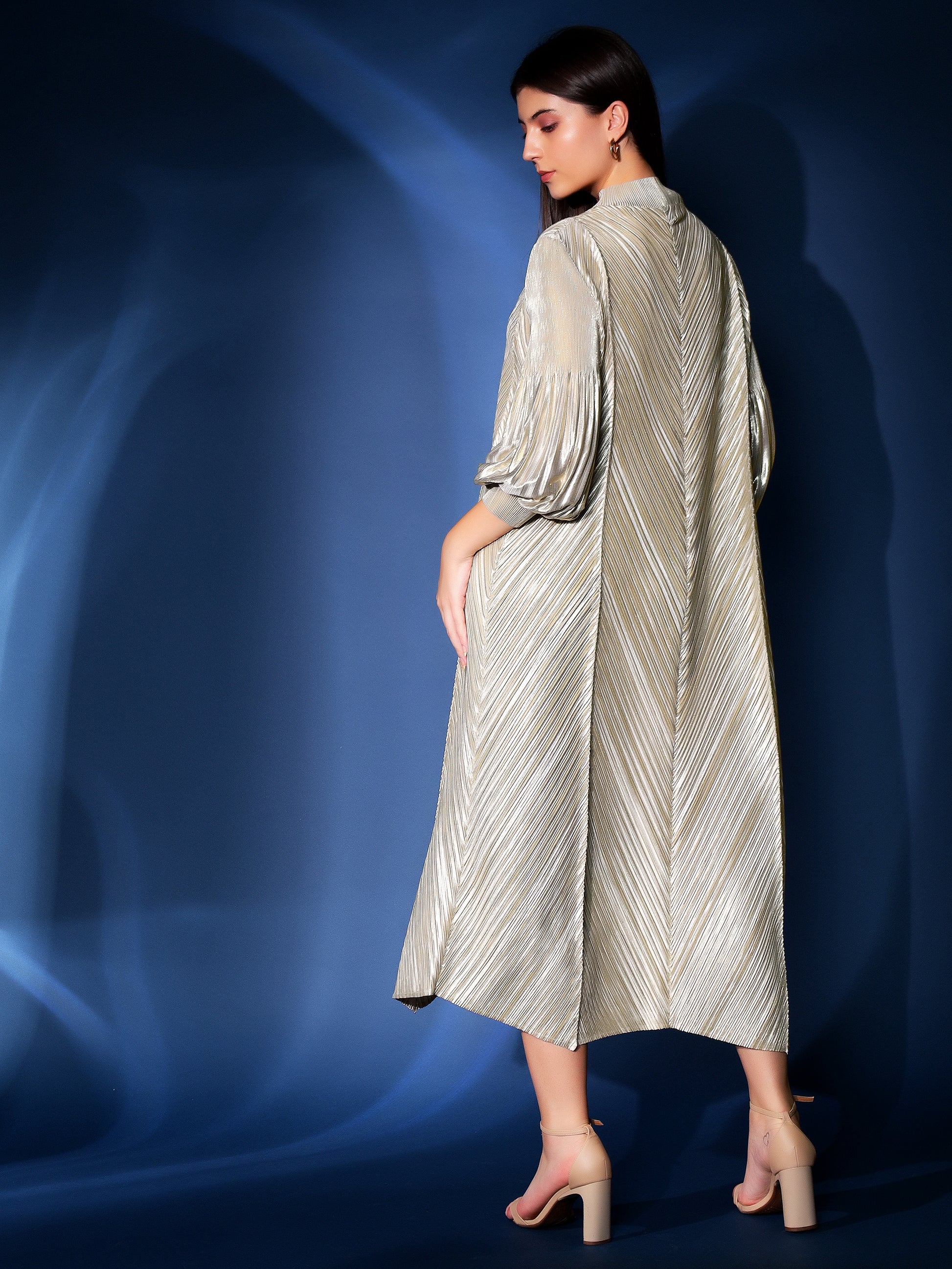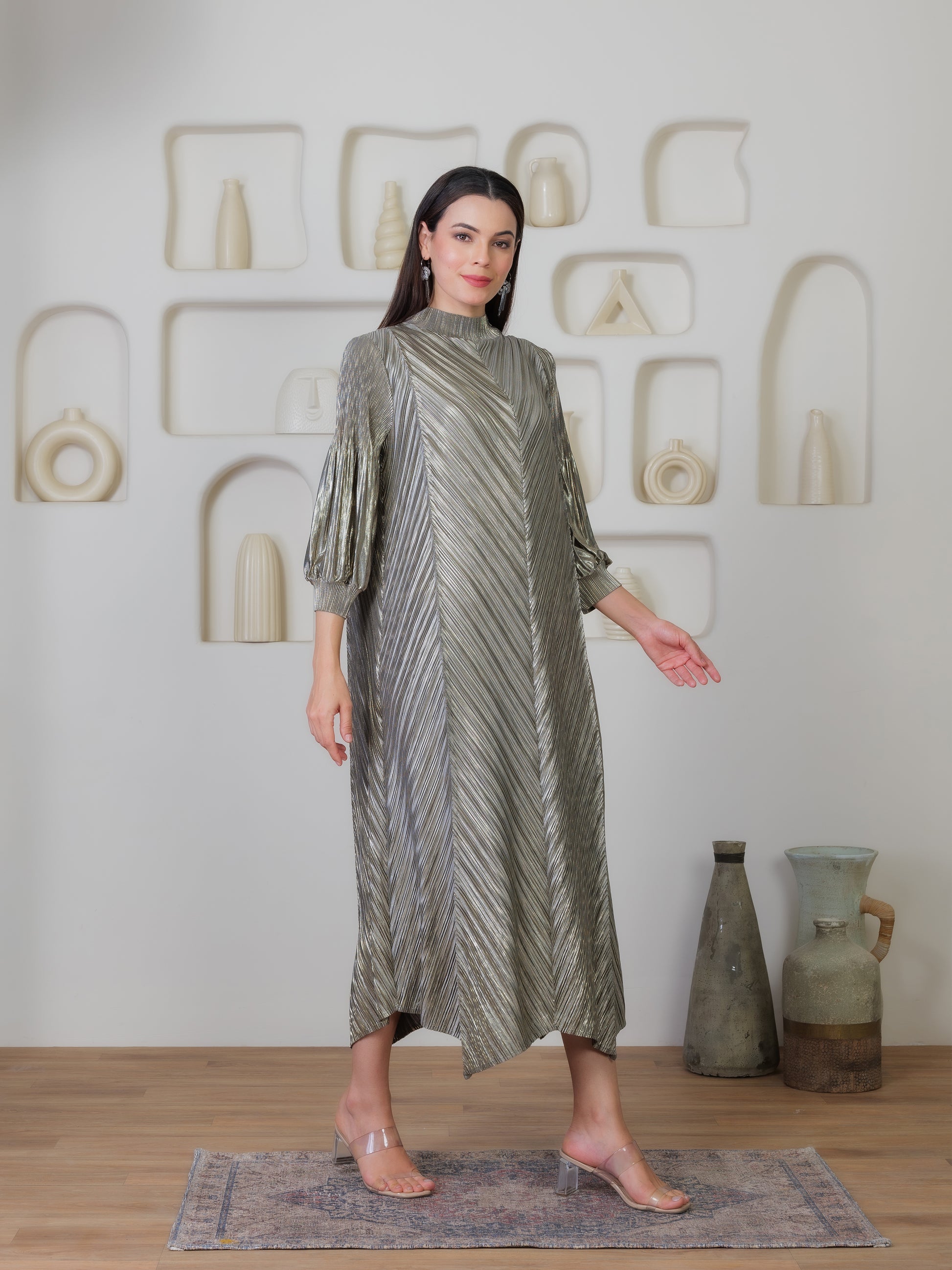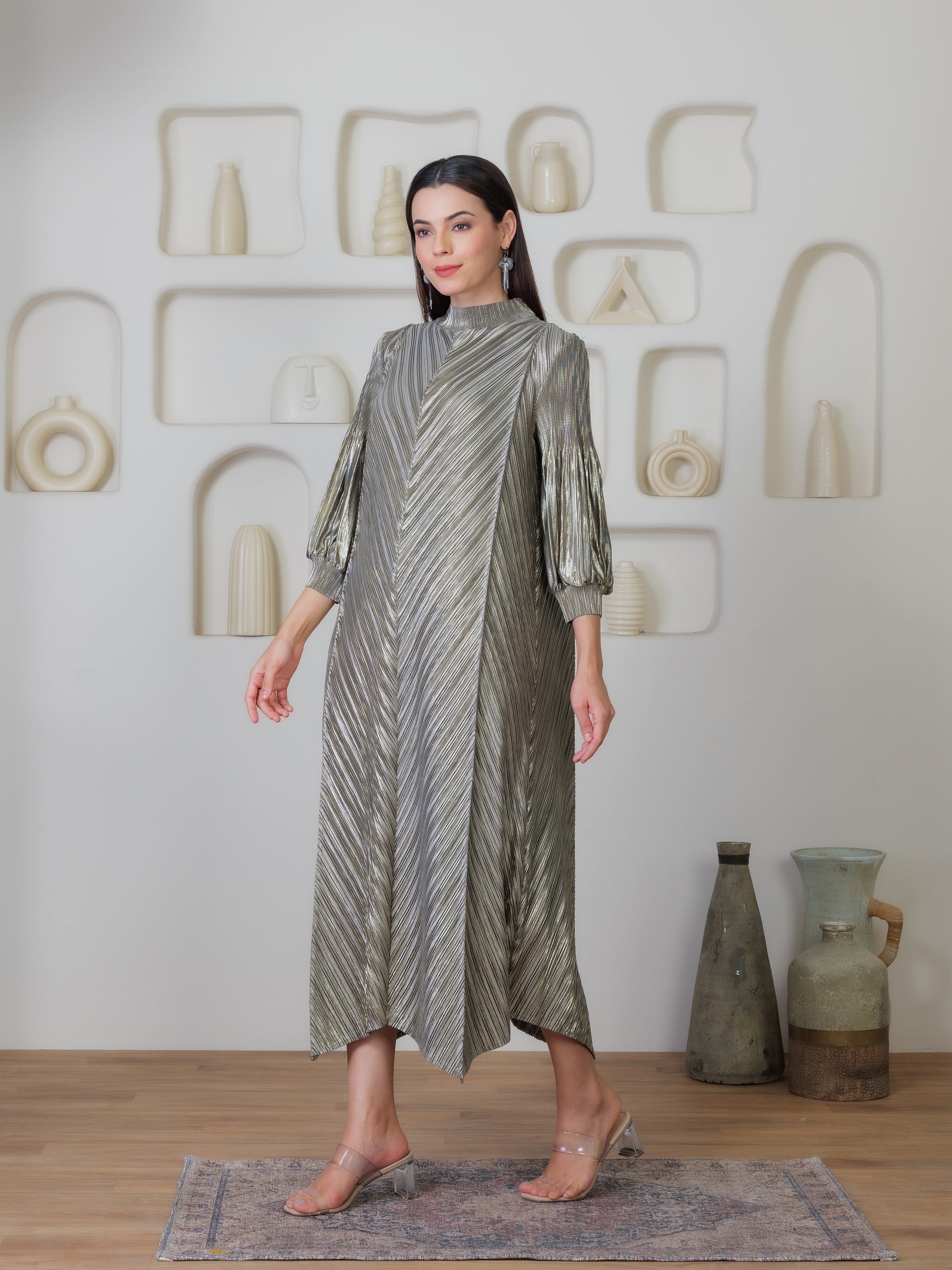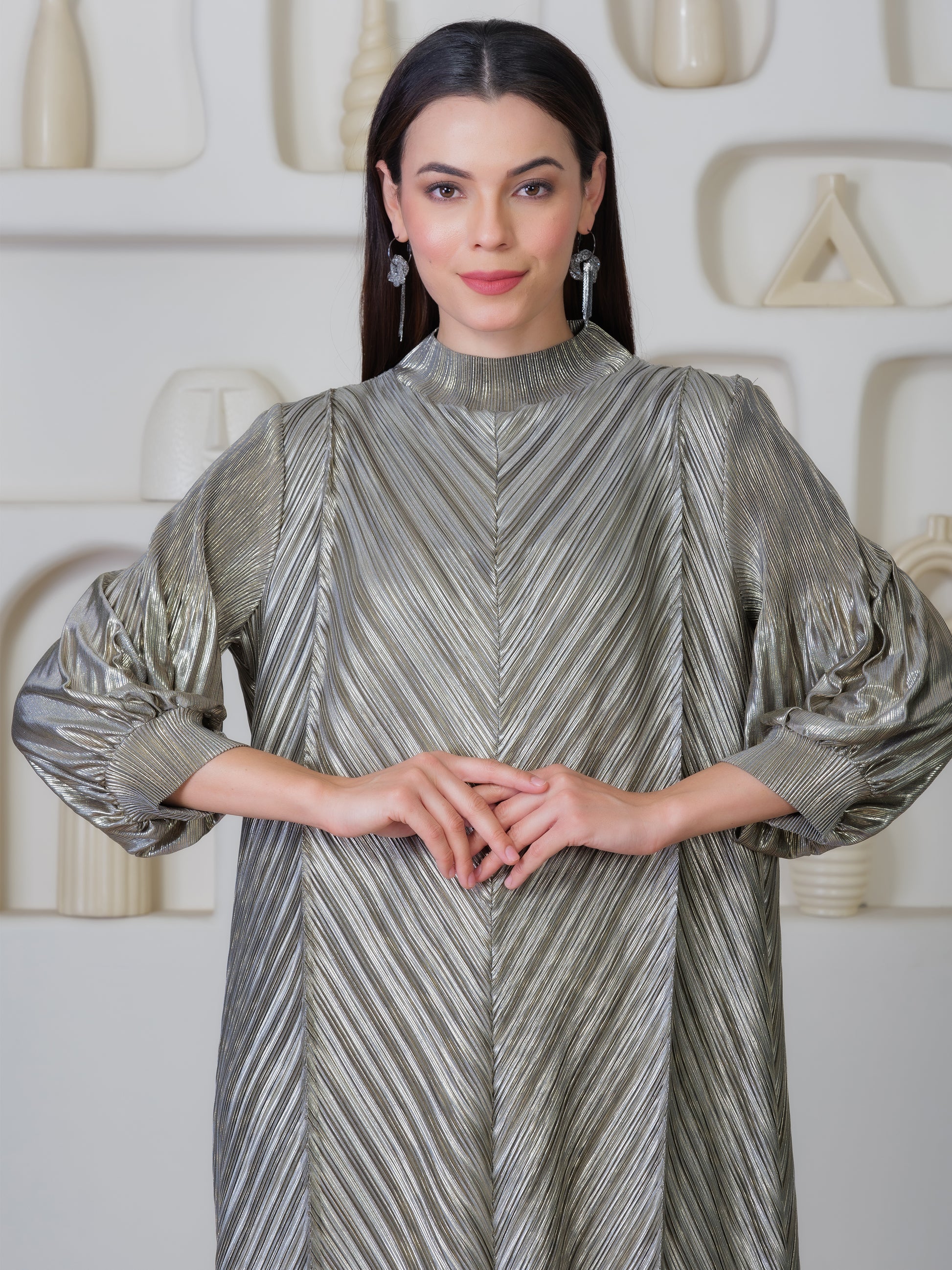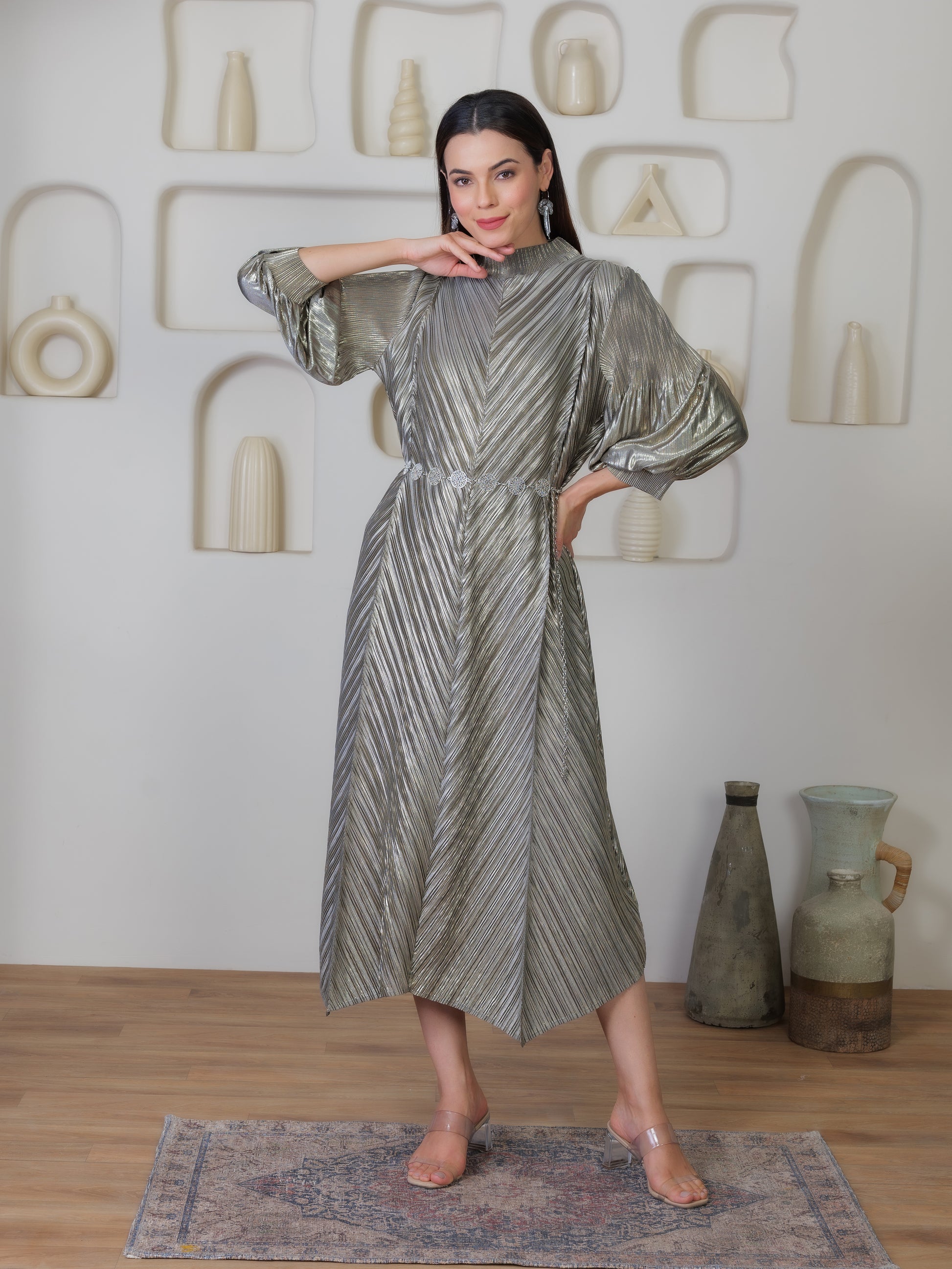 Embrace the allure of metallics this season with the Nahria Dress in steel grey. Shop now and add a touch of glamour to your wardrobe with this must-have piece that promises style and sophistication in every stitch.