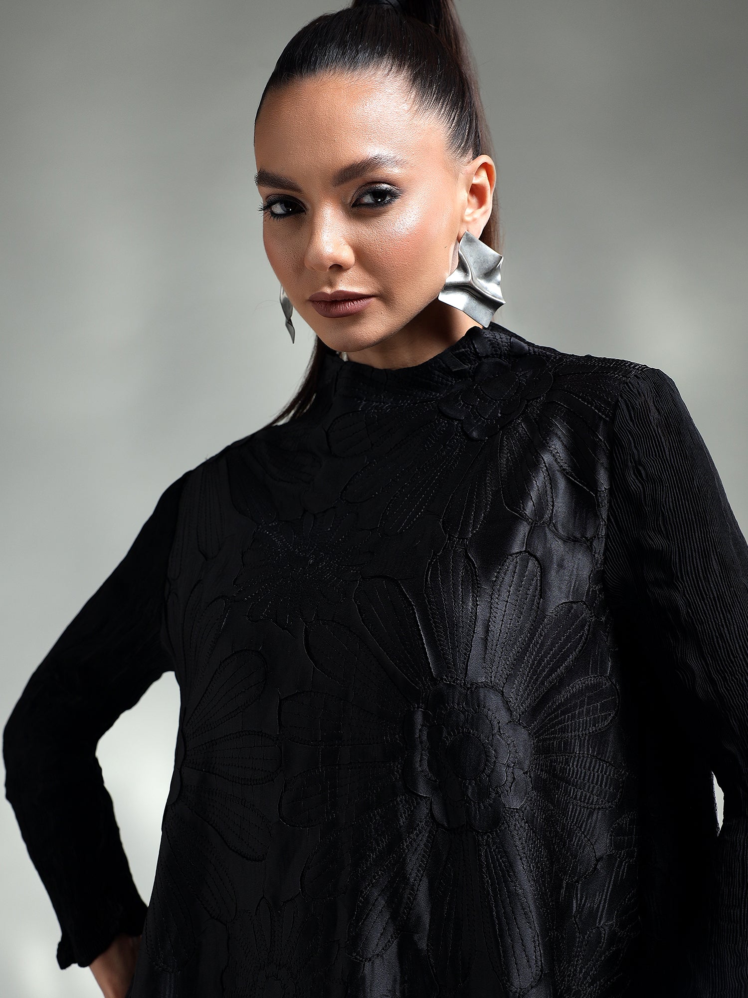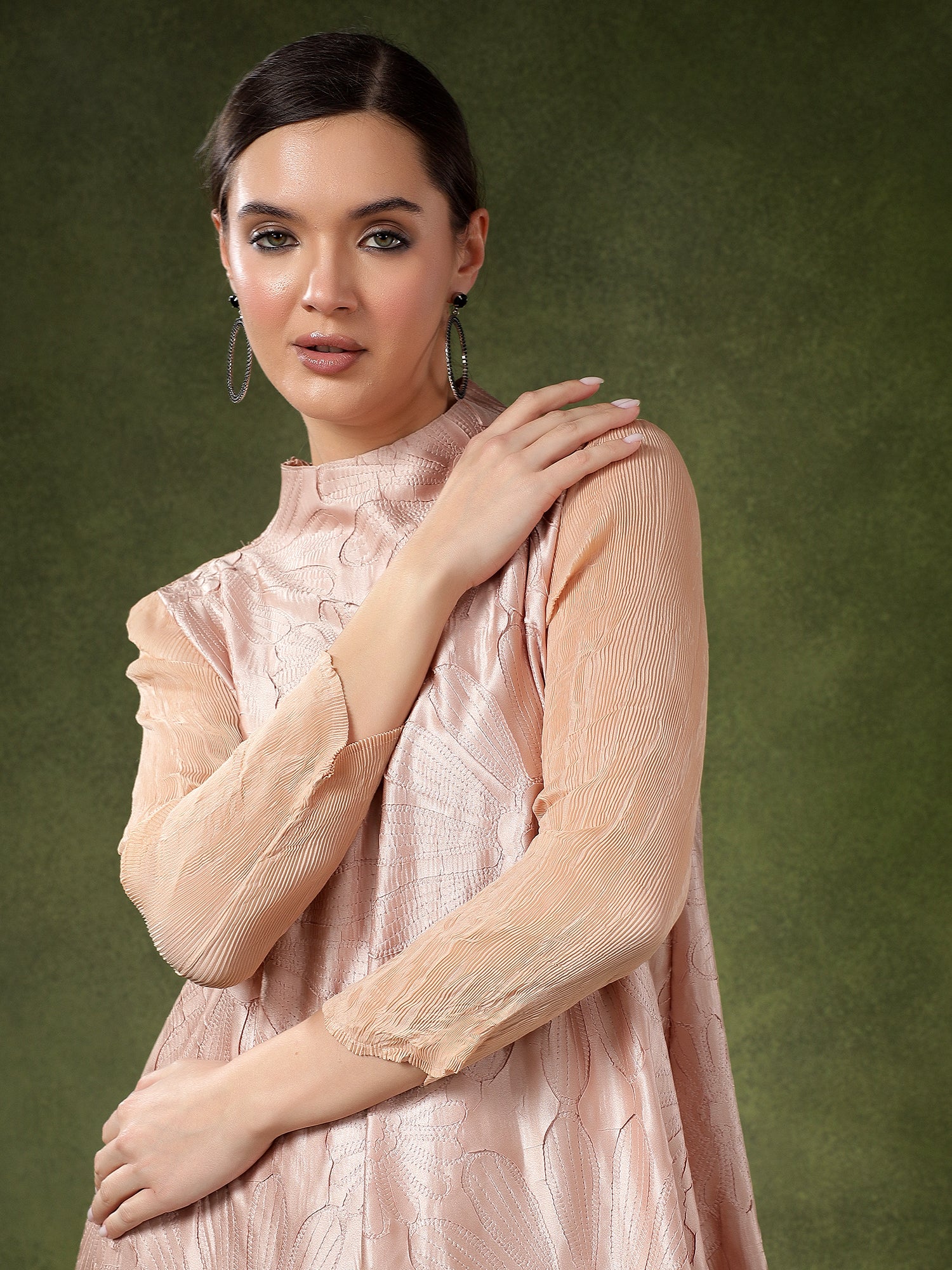 - Crushed sleeves for a unique texture and stylish flair