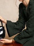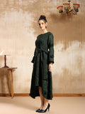 Elegant, textured, and timeless — The Olyssia Dress is designed to embody quiet sophistication for the winter season. Crafted from a rich crinkled fabric with tonal 3D floral appliqués, this dress offers depth and understated glamour. The asymmetric high low hemline and soft belt at the waist create a flattering silhouette, while the full sleeves and textured finish make it ideal for cooler evenings.