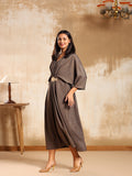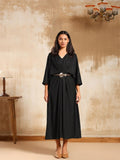 Perfect for evening soirées or festive celebrations, the Raven Drape Dress combines comfort with quiet opulence.