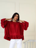 This stylish top is a must-have addition to your wardrobe, available in versatile color: Ruby Red. The simple yet chic design ensures it can easily be dressed up or down, making it perfect for any occasion. Whether paired with jeans for a casual look or with a skirt for a more polished ensemble, this top promises effortless style. Its comfortable fit and timeless color options make it a go-to piece for every season.