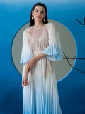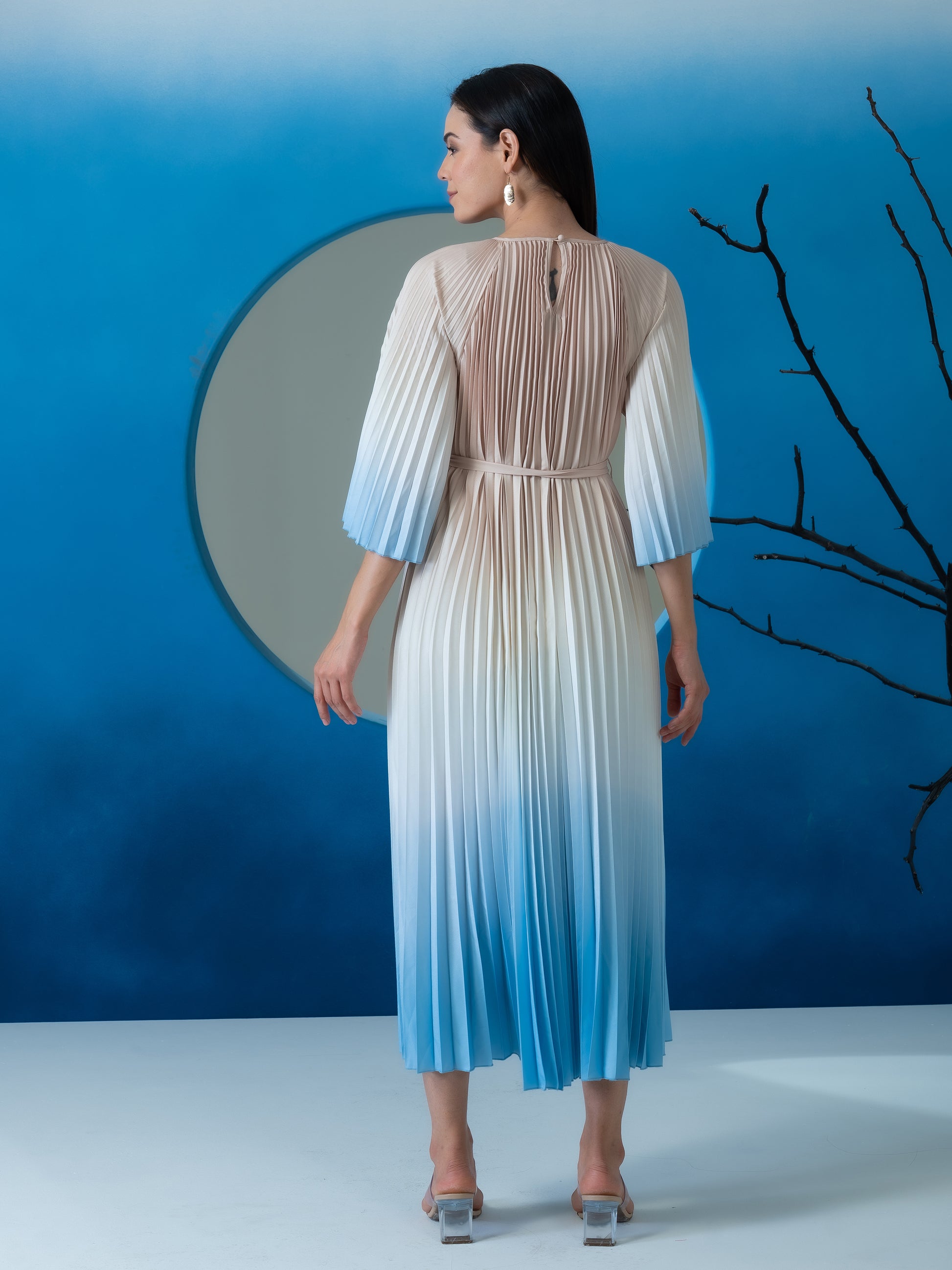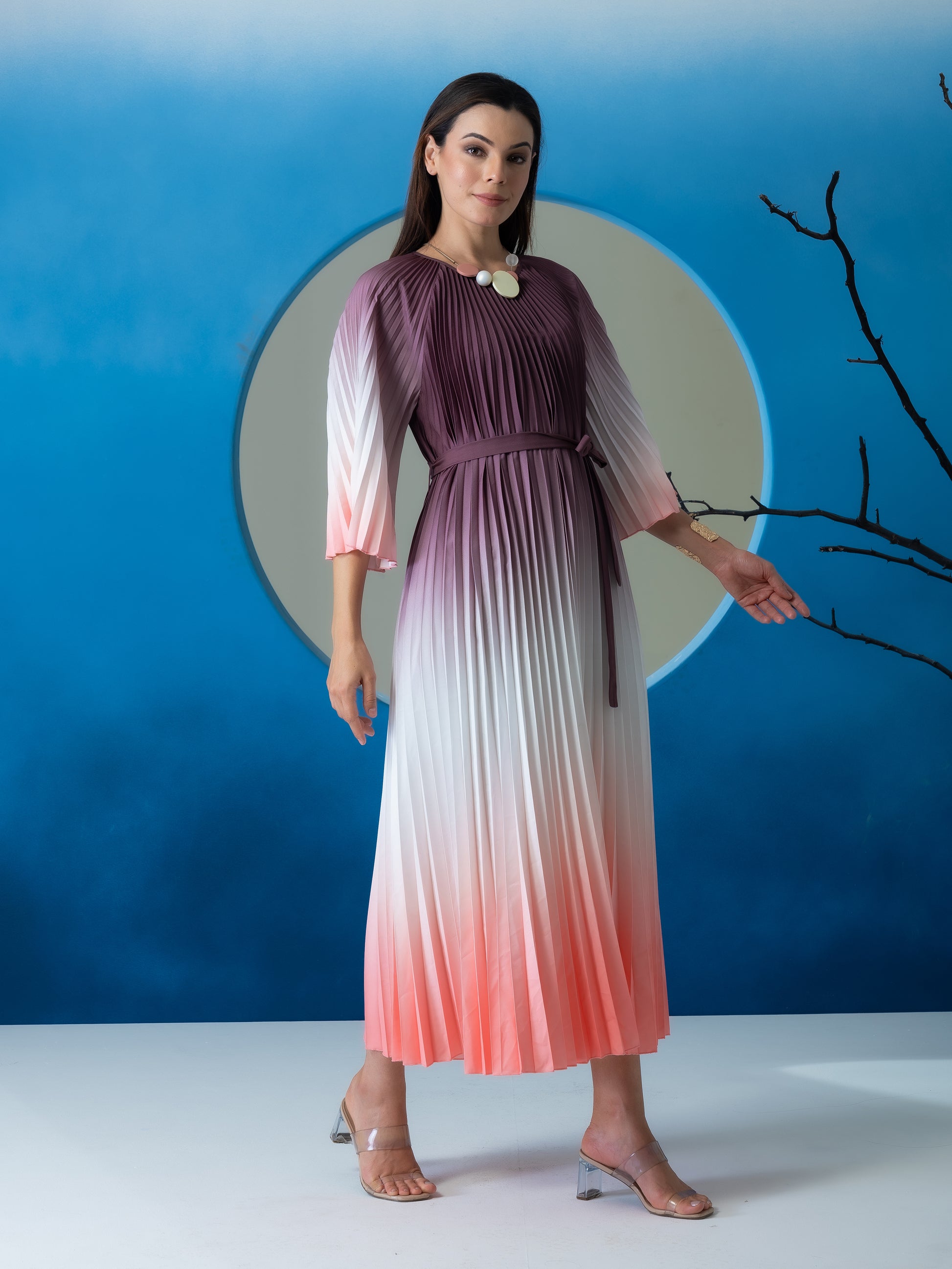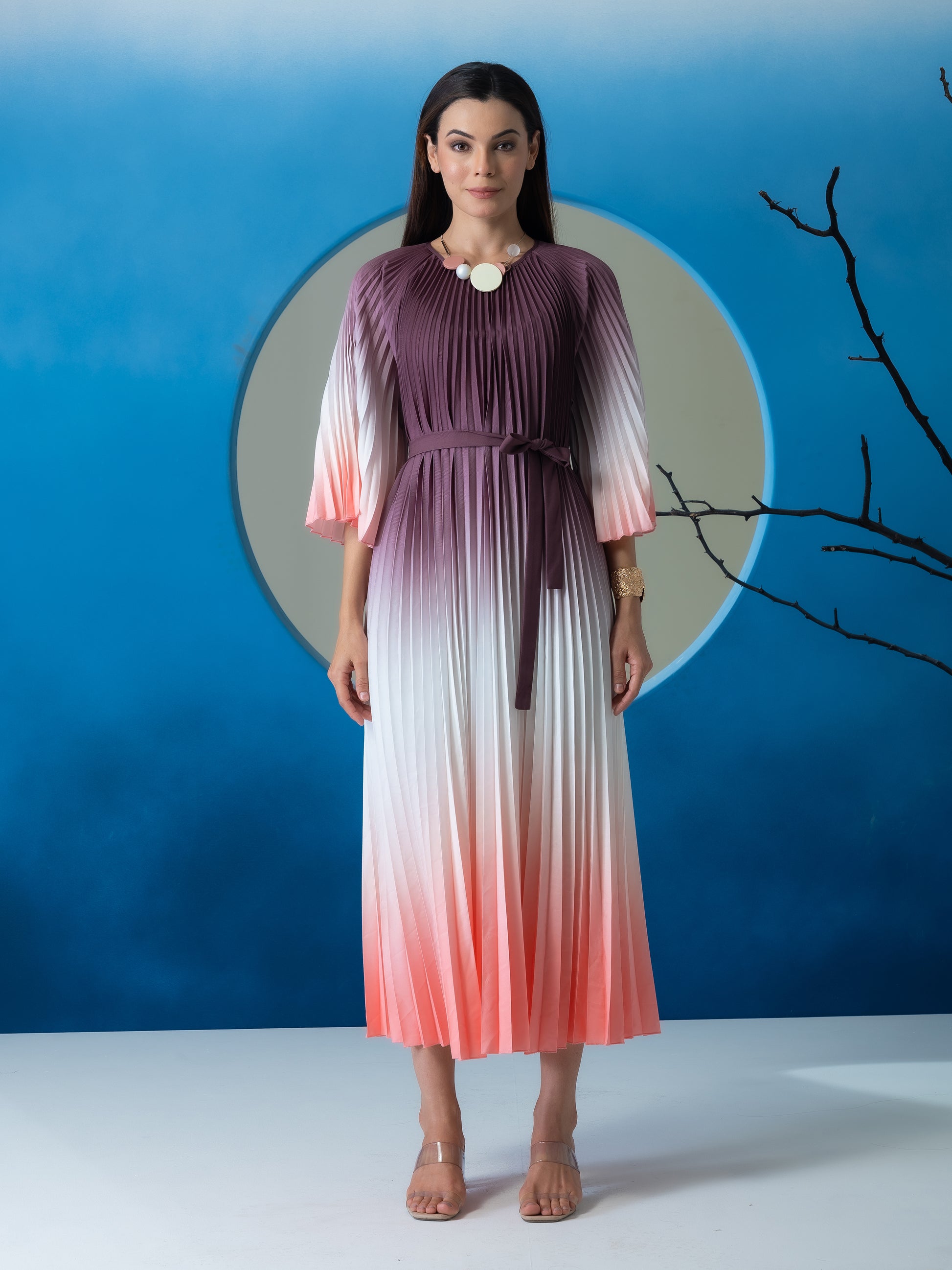 The Serenity Ombre Pleated Dress is a versatile piece that can be styled for a variety of occasions. Whether you're attending a garden wedding, an elegant brunch, or an evening soiree, this dress will ensure you look effortlessly chic and feel utterly comfortable.