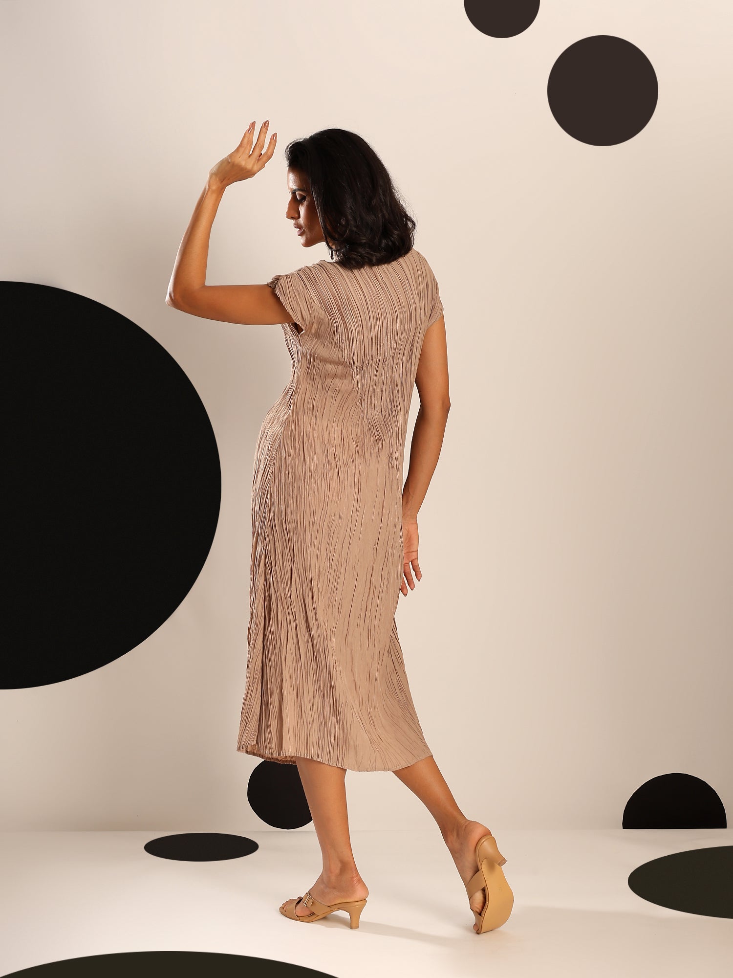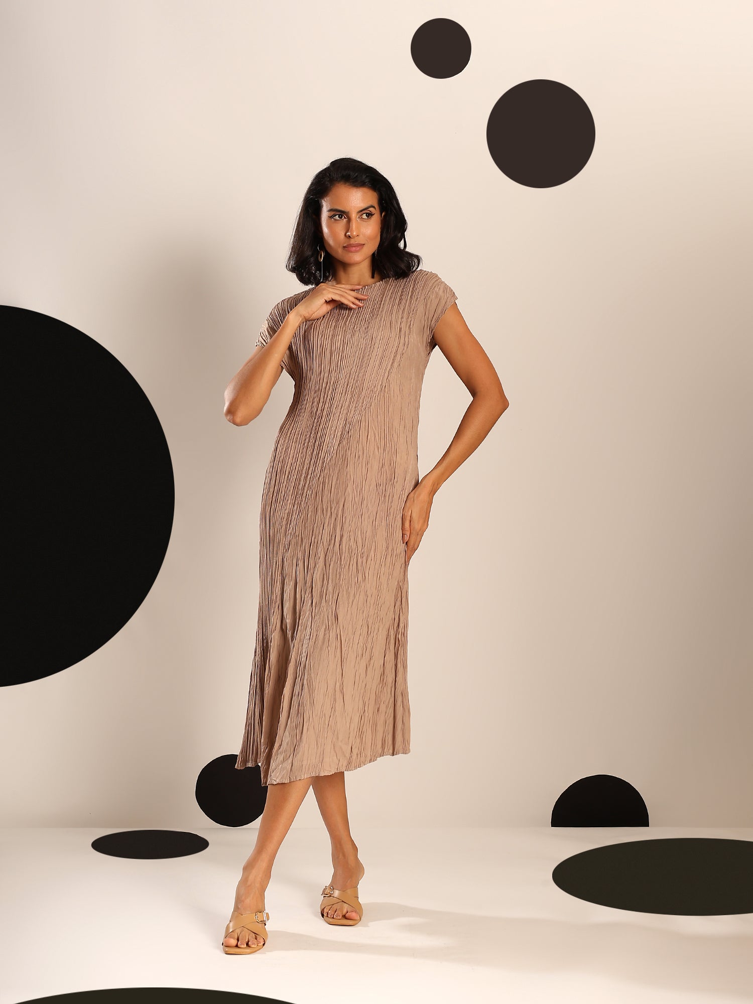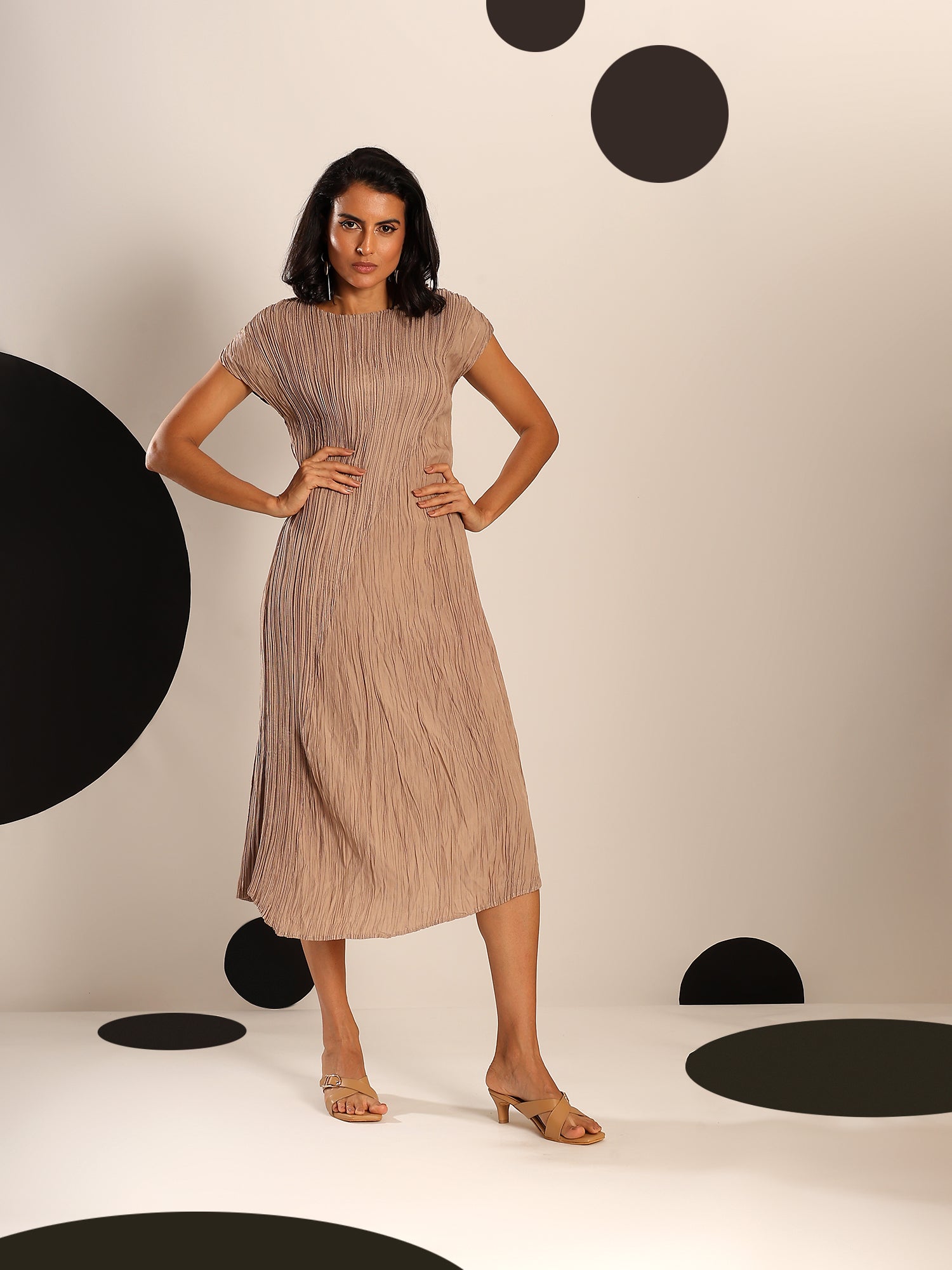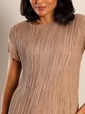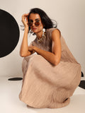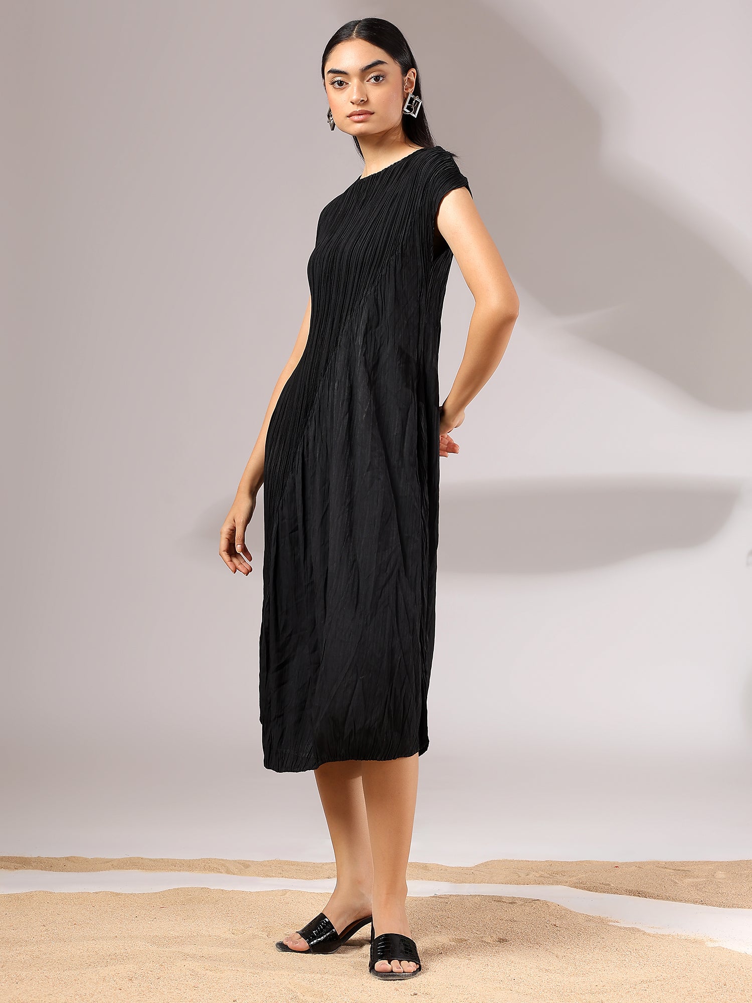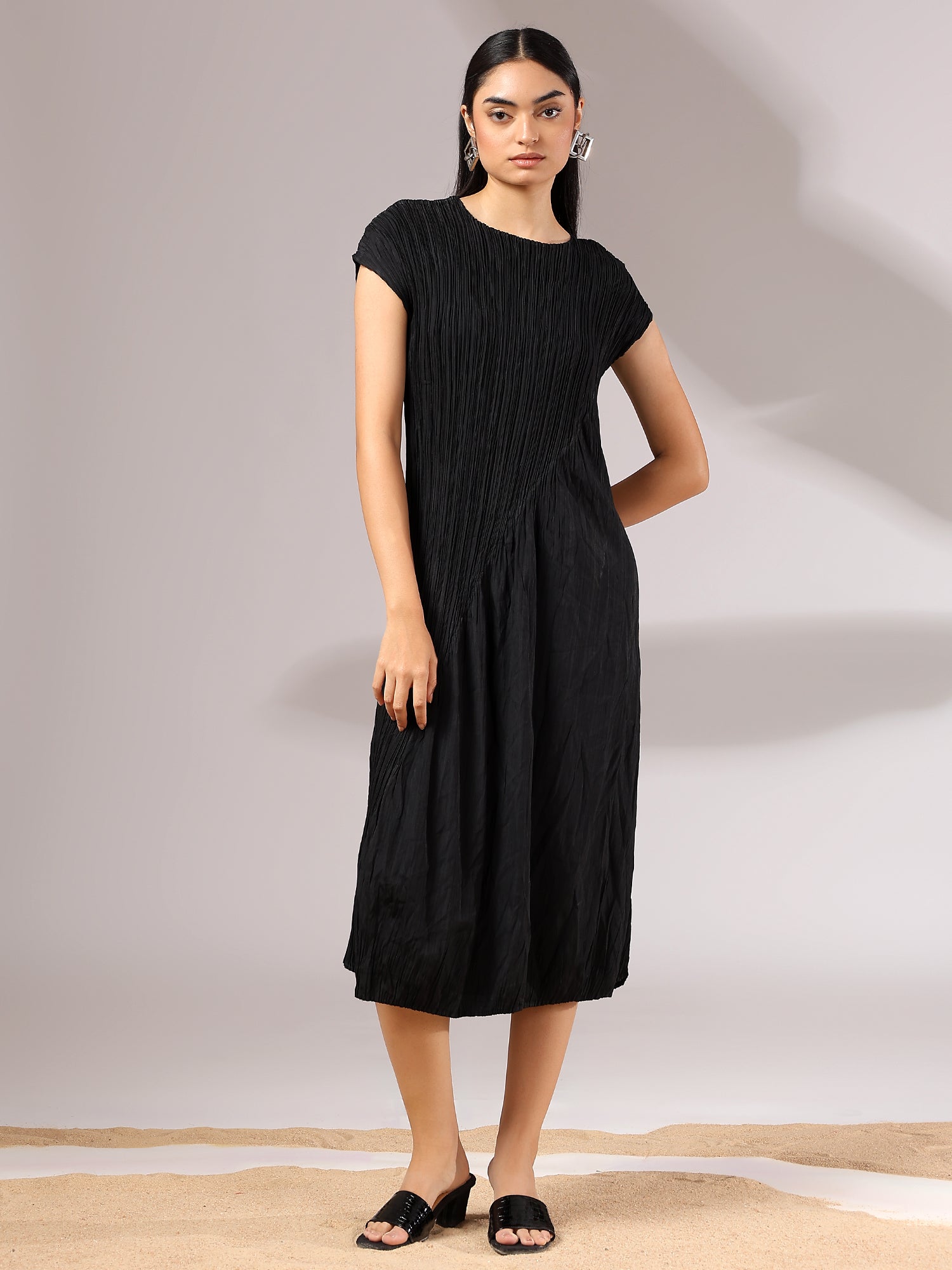 Light as air and endlessly versatile, Sora is a midi dress crafted in a soft, crinkled pleated texture that flows with graceful ease. Its minimal silhouette is elevated by fine detailing—cap sleeves, gentle drape, and a serene blue hue that feels like sky at dusk. Whether styled with bold accessories or worn on its own, Sora is the embodiment of understated elegance and modern femininity.