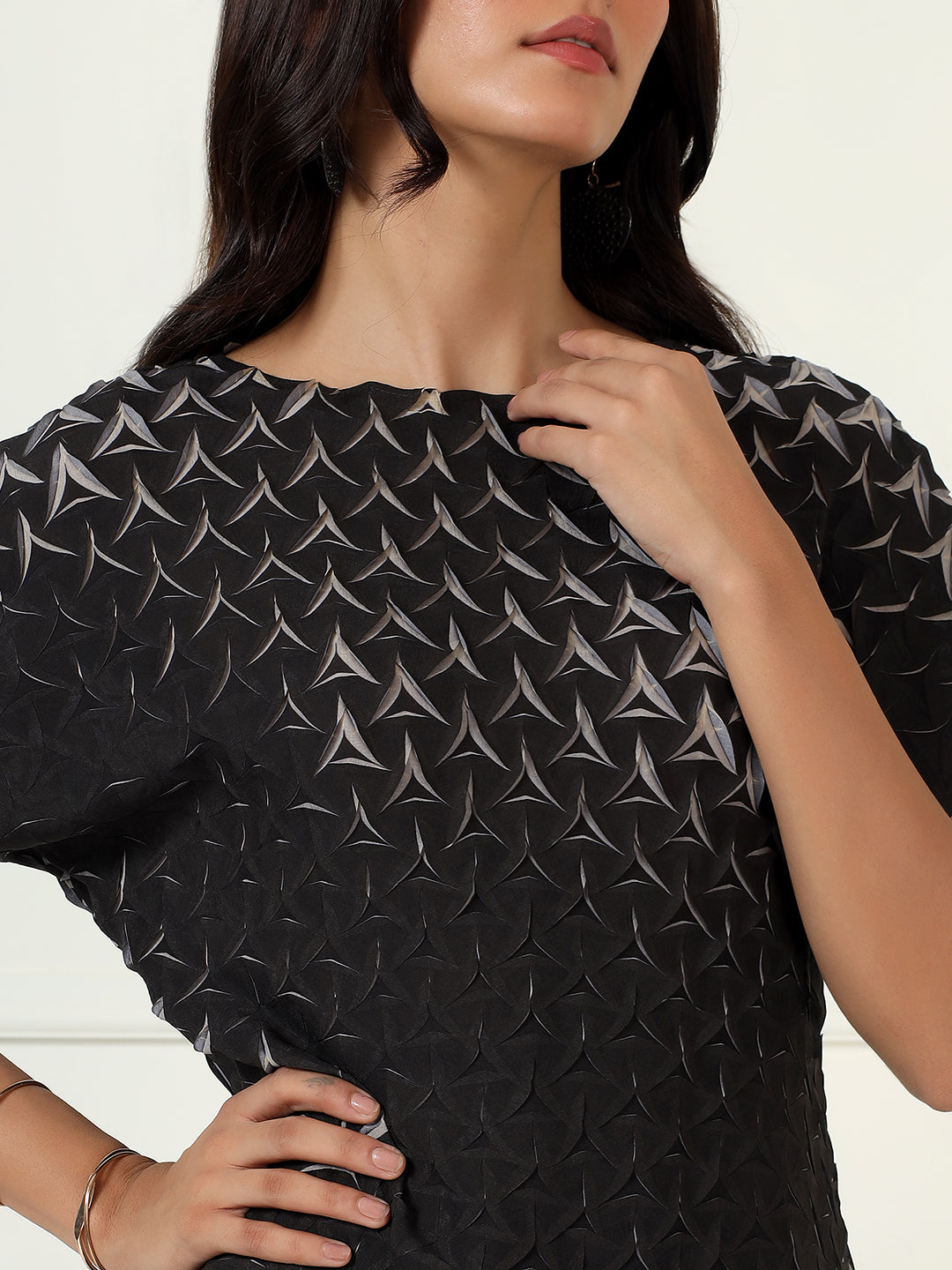 The Stellar Noir Skirt Set is a bold yet elegant statement, crafted in rich black with an intricate 3D textured finish that catches the light beautifully. The relaxed top pairs seamlessly with the flowy midi skirt, creating a coordinated look that is both sophisticated and versatile. Perfect for cocktail evenings, festive gatherings, or chic dinners, this set redefines modern glamour with effortless ease.