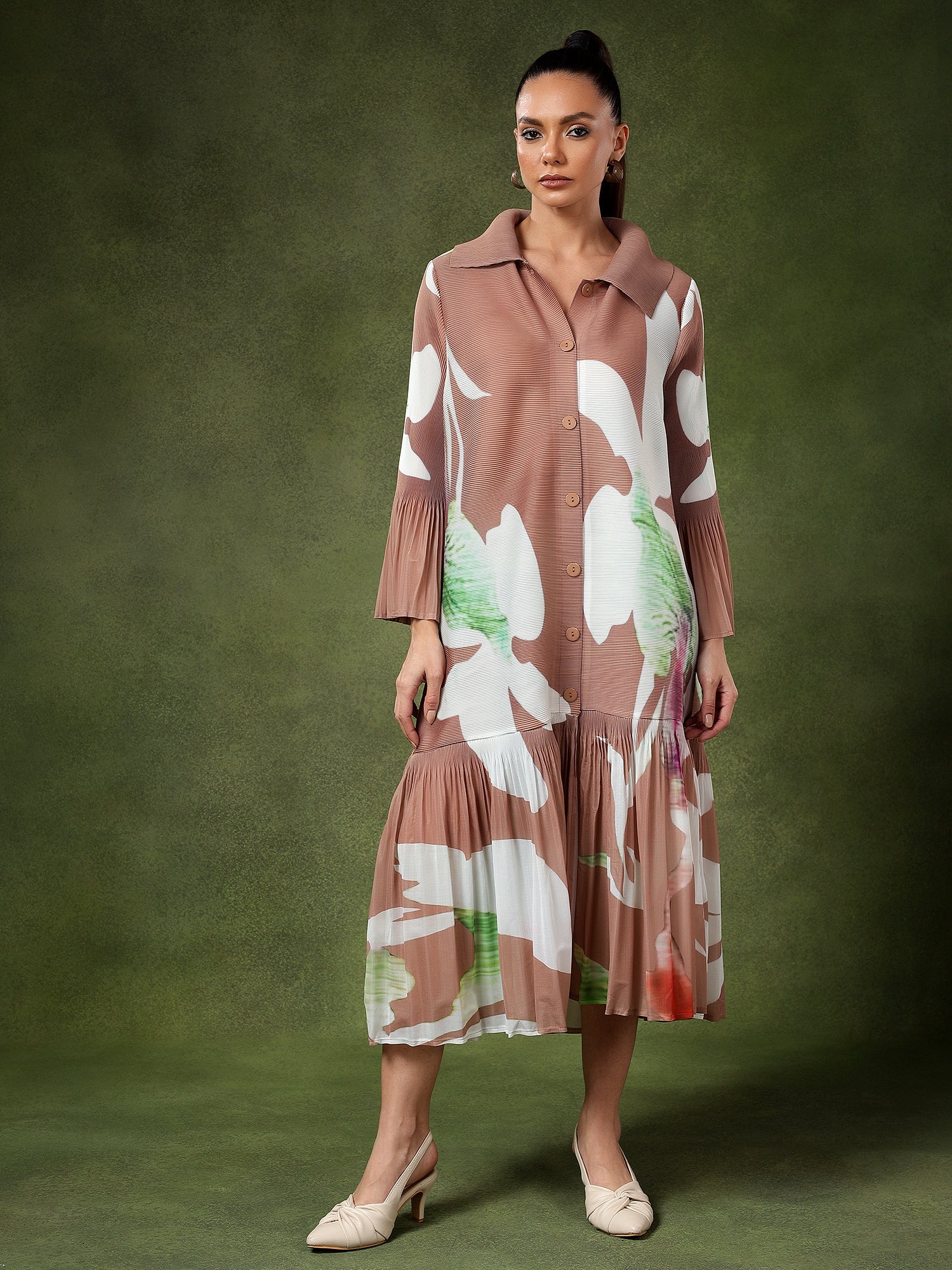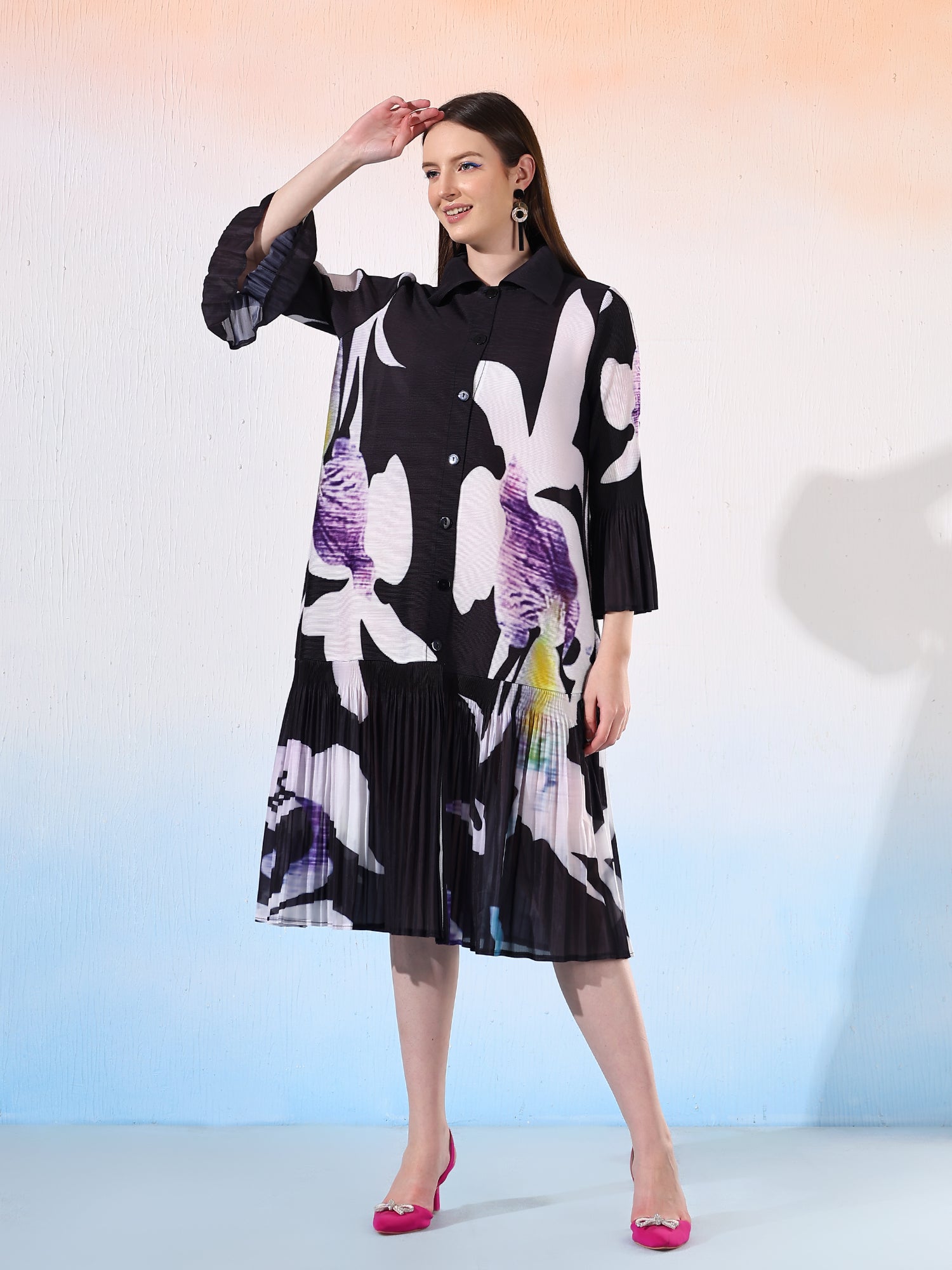 Turn heads with this stunning long pleated dress, adorned with a beautiful floral print that exudes elegance and charm. The flowing pleats and vibrant patterns make it the perfect choice for a dreamy sundowner or a picturesque beach wedding. Designed to move gracefully with you, this dress combines comfort with sophistication, making it an effortless yet striking option for any outdoor celebration. Its timeless appeal ensures you’ll feel both stylish and radiant on any special occasion.